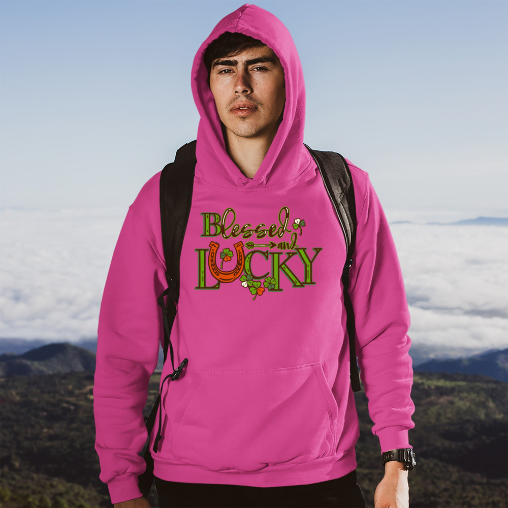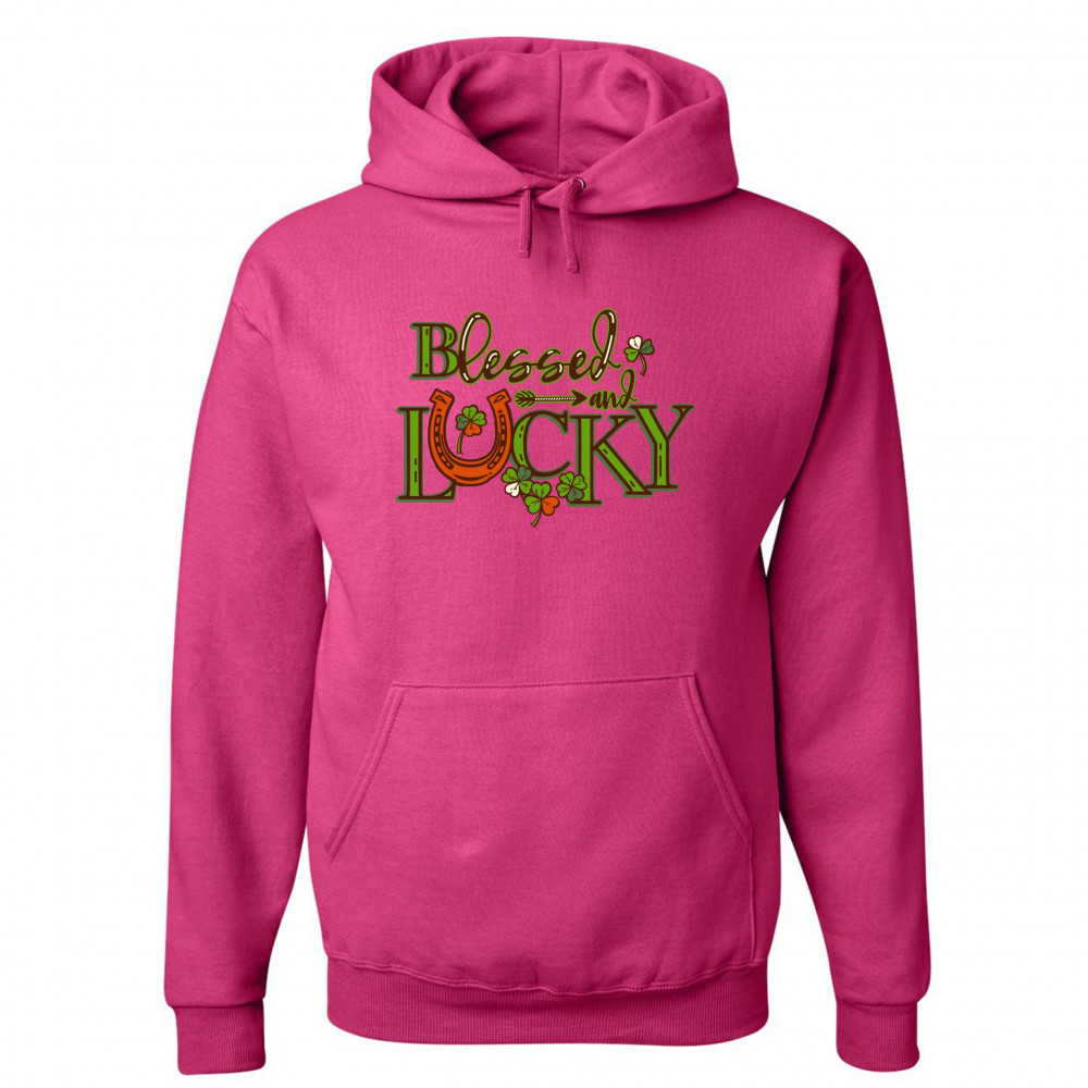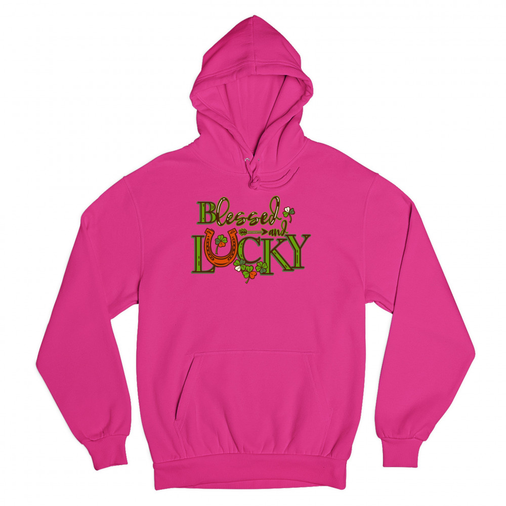BLESSED AND LUCKY sweatshirt st. patrick's day clover irish malarkey hoodie pink