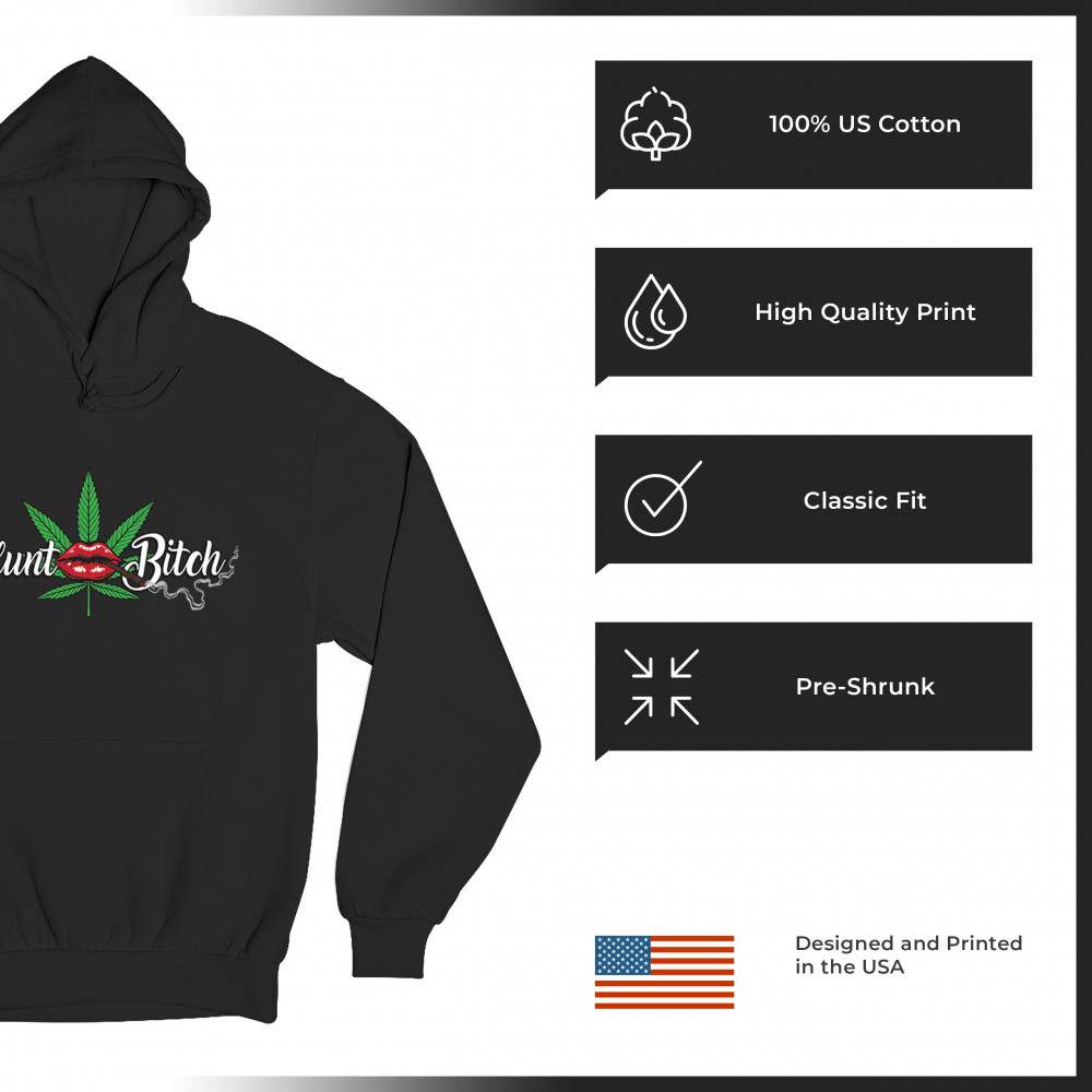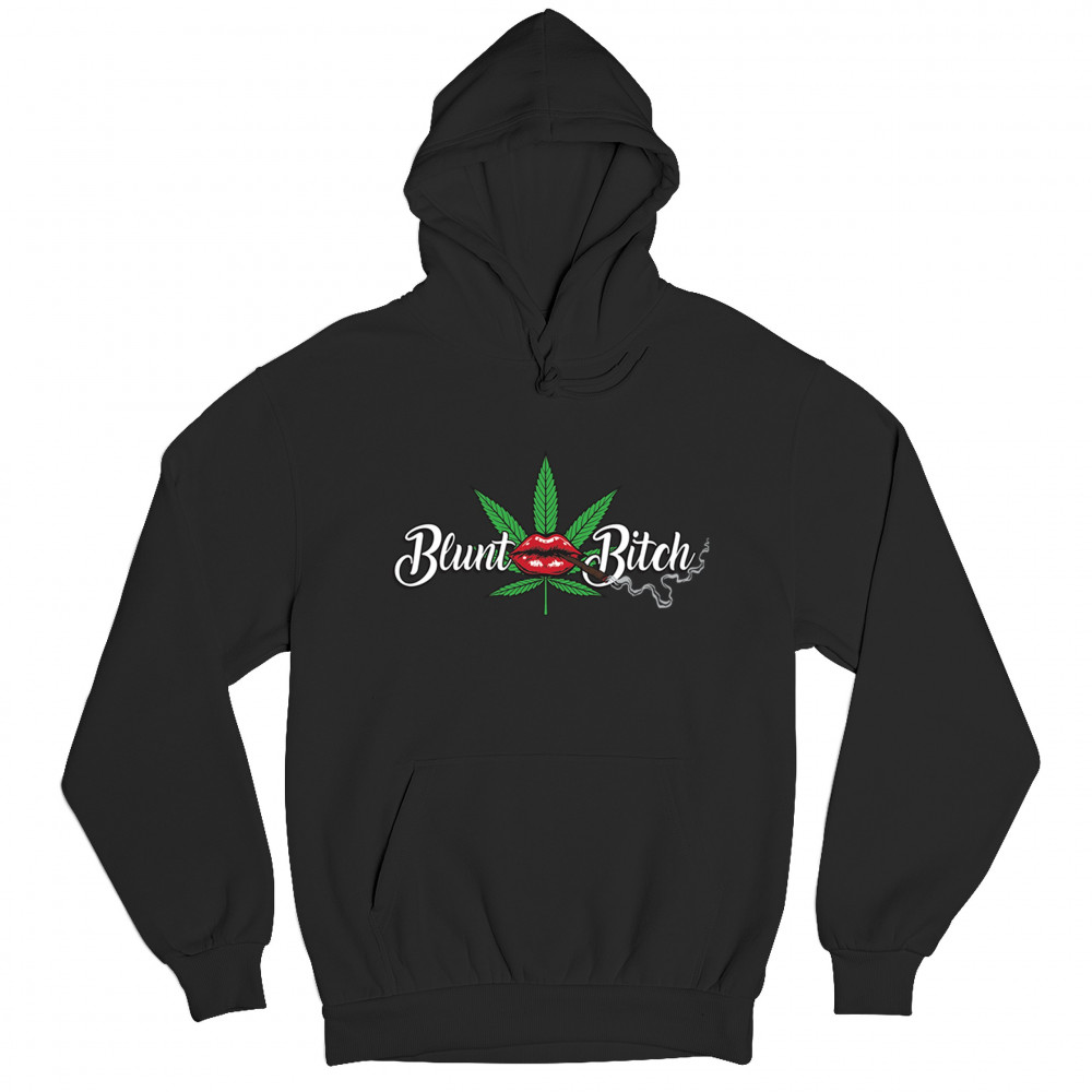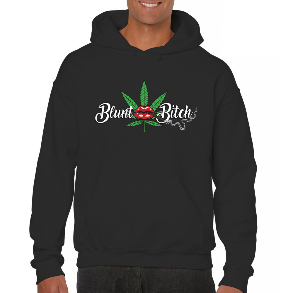 BLUNT BITCH WEED sweatshirt cannabis lips stoner 420 marijuana leaf hoodie black
