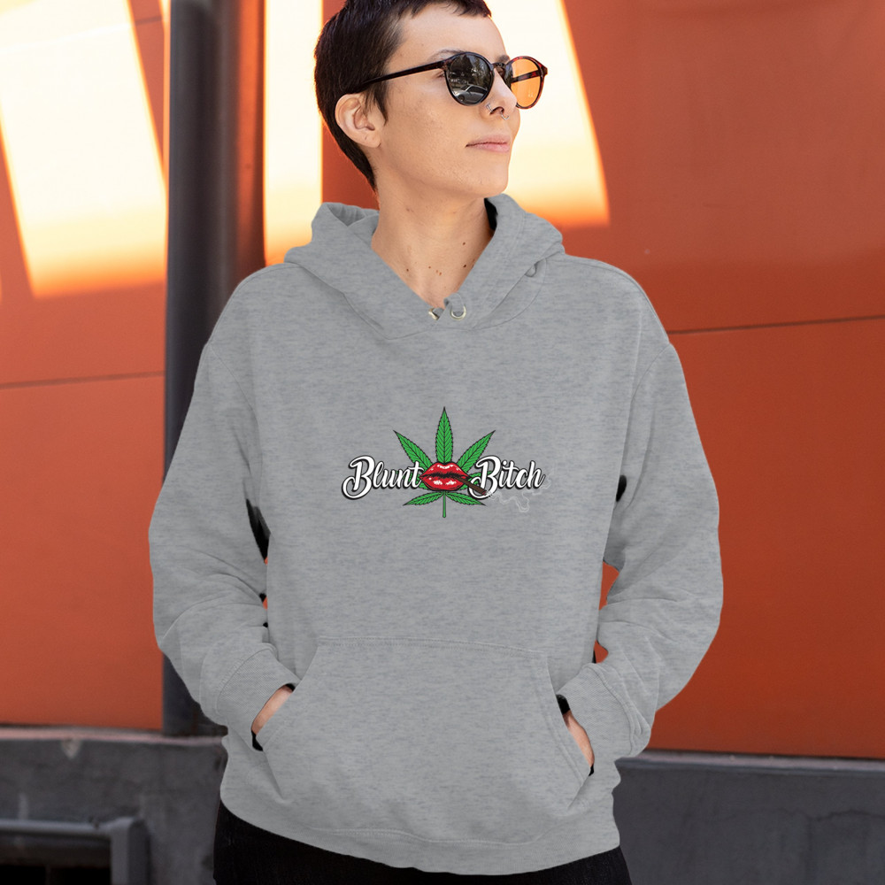 Fierce “Blunt Bitch†design with red lips, blunt, and weed leaf. Bold 420 fashion for confident stoners, cannabis queens, and loud personalities.