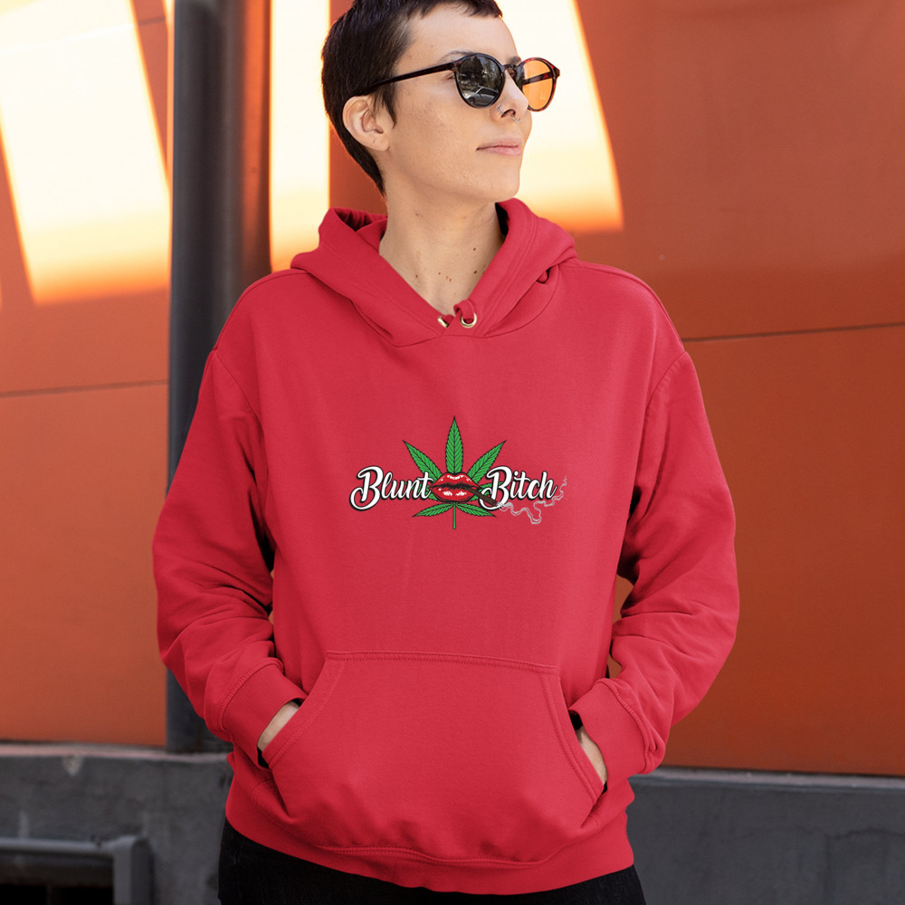 Fierce “Blunt Bitch†design with red lips, blunt, and weed leaf. Bold 420 fashion for confident stoners, cannabis queens, and loud personalities.