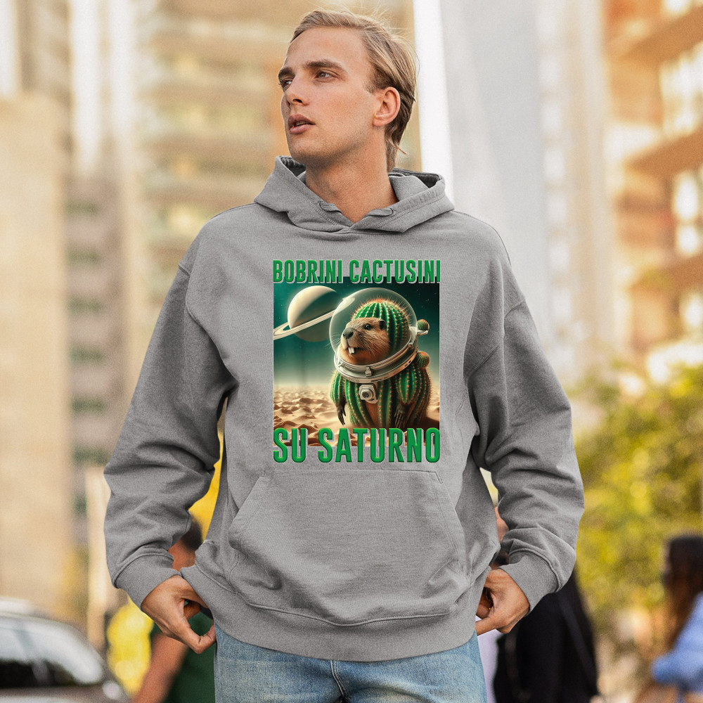 BOBRINI CACTUSINI SU SATURNO unisex hoodie italian brainrot gen z meme gray