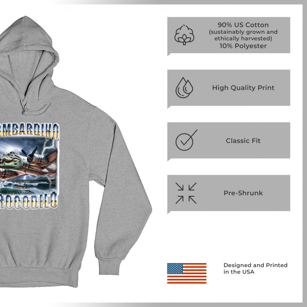 Bombardino Crocodilo is meme fashion with teeth. Featuring a crocodile-faced bomber jet flying through internet chaos, this Italian Brainrot masterpiece blends weirdcore visuals, cursed meme logic, and Gen Z humor. Perfect for fans of surreal fashion, viral absurdity, and TikTok-driven ironic style.