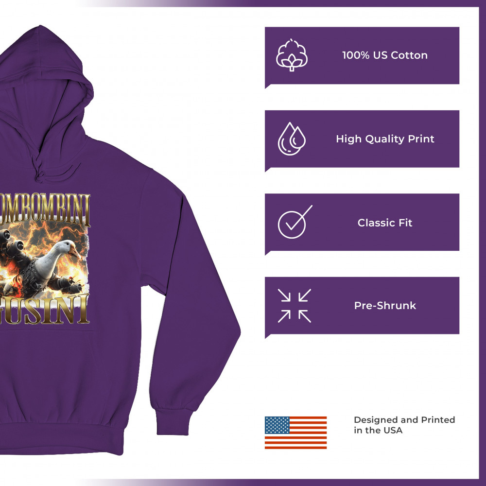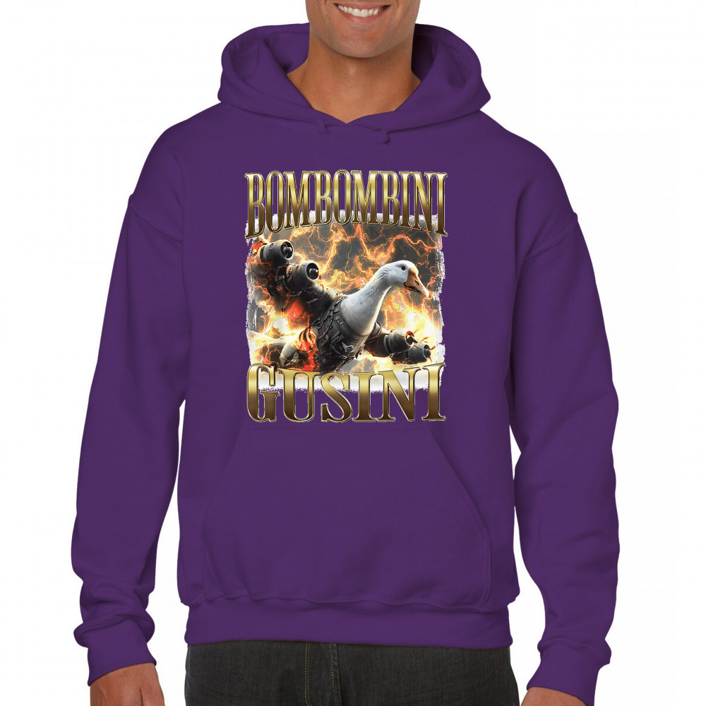 Bombombini Gusini is meme chaos at Mach speed. Featuring a mechanized goose powered by pure Italian Brainrot energy, this design blends cursed-core humor, Gen Z absurdity, ironic fashion, and weirdcore visuals. Perfect for animal meme fans, TikTok-core addicts, and anyone whose humor is completely unhinged.