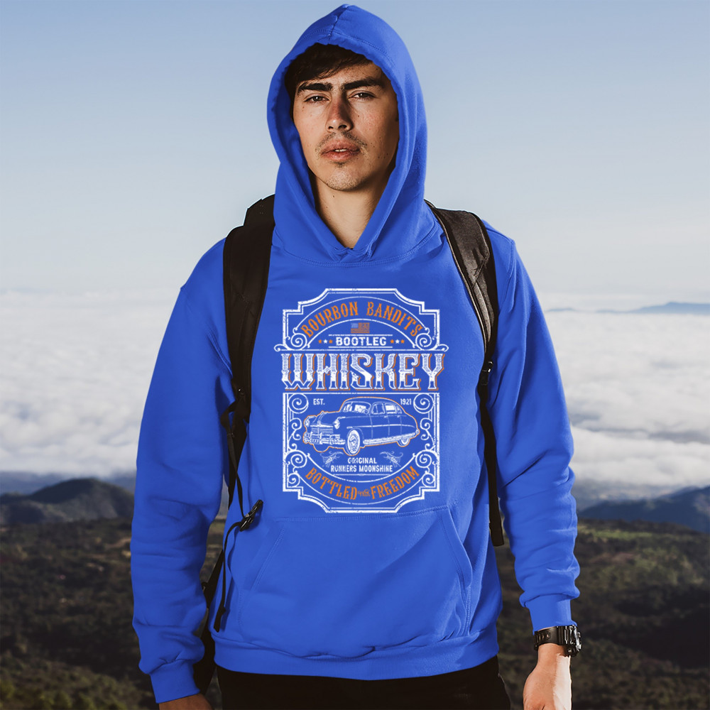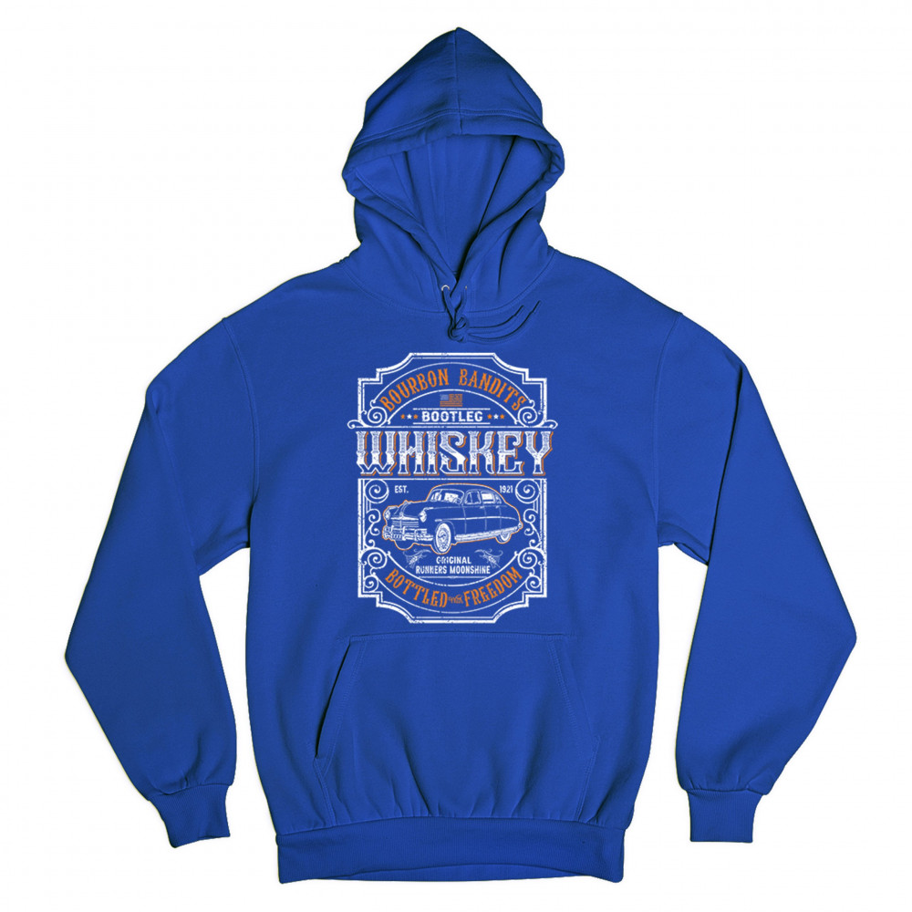BOURBON BANDIT'S BOOTLEG WHISKEY sweatshirt original runners moonshine hoodie royal blue