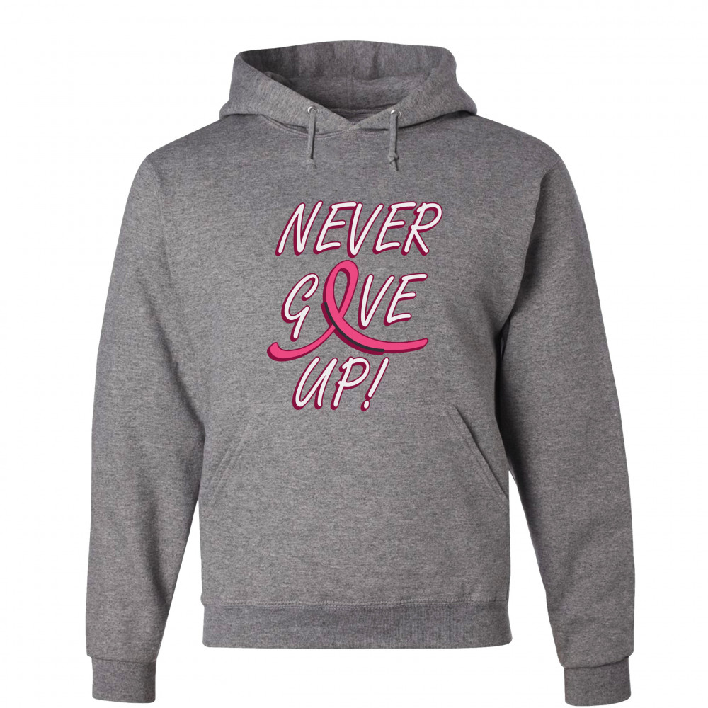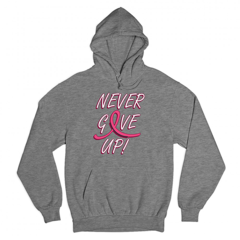 BREAST CANCER AWARENESS NEVER GIVE UP sweatshirt pink ribbon hoodie gray