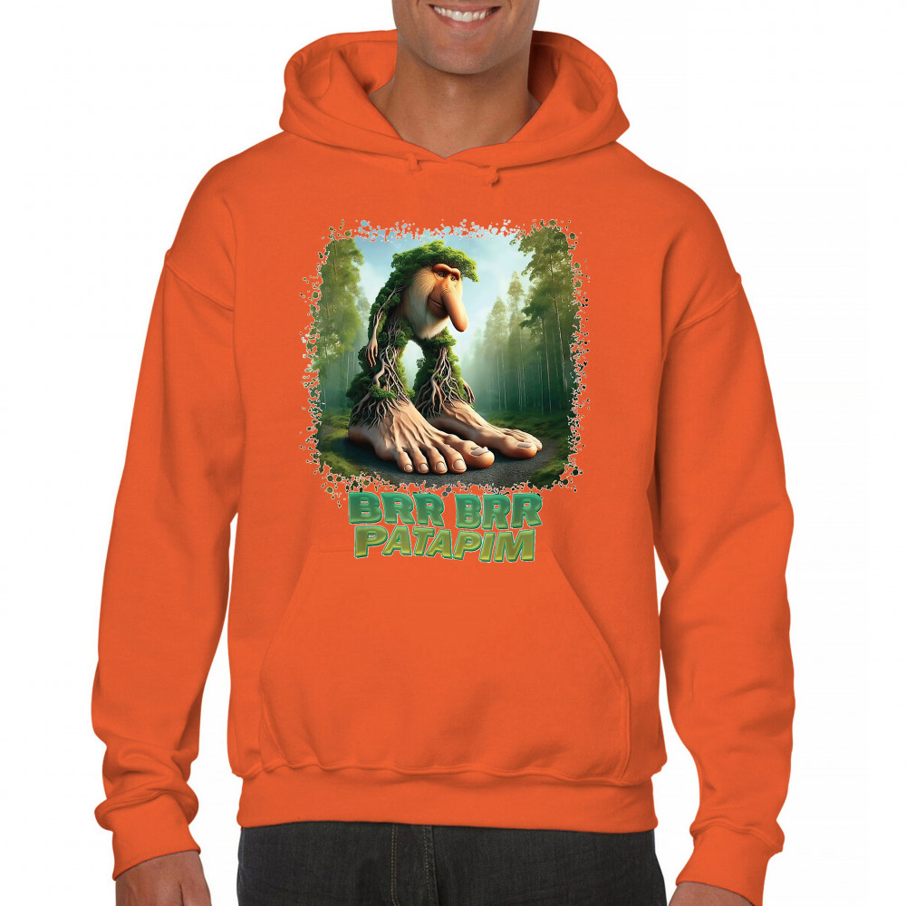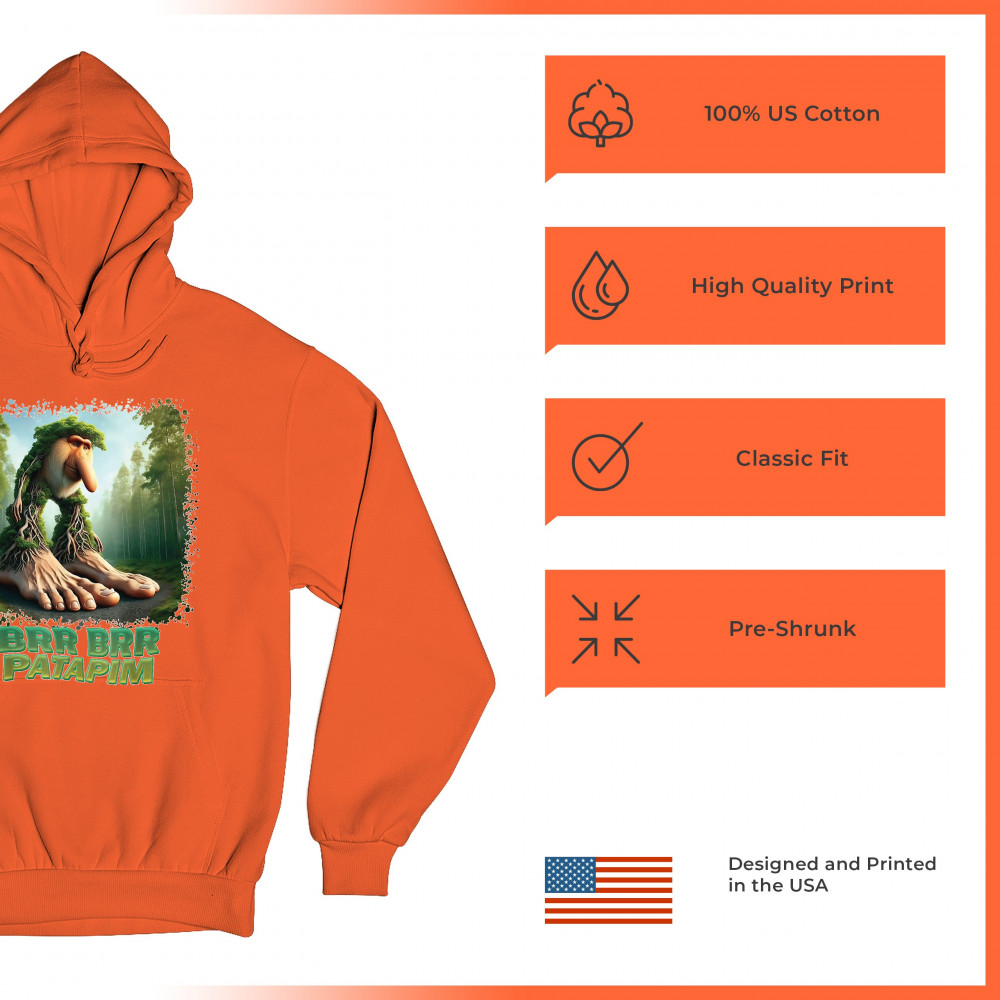 Brr Brr Patapim is forest-core gone full brainrot. Featuring a massive-footed tree-beast with cryptid energy, this design blends cursed meme culture, TikTok humor, weirdcore visuals, and surreal Gen Z fashion. It’s ideal for fans of absurd monster mashups and internet chaos fits.