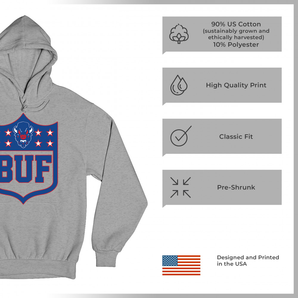 Bold Buffalo bison shield design for game day gear, tailgating, Sunday football, and championship pride in The Queen City.