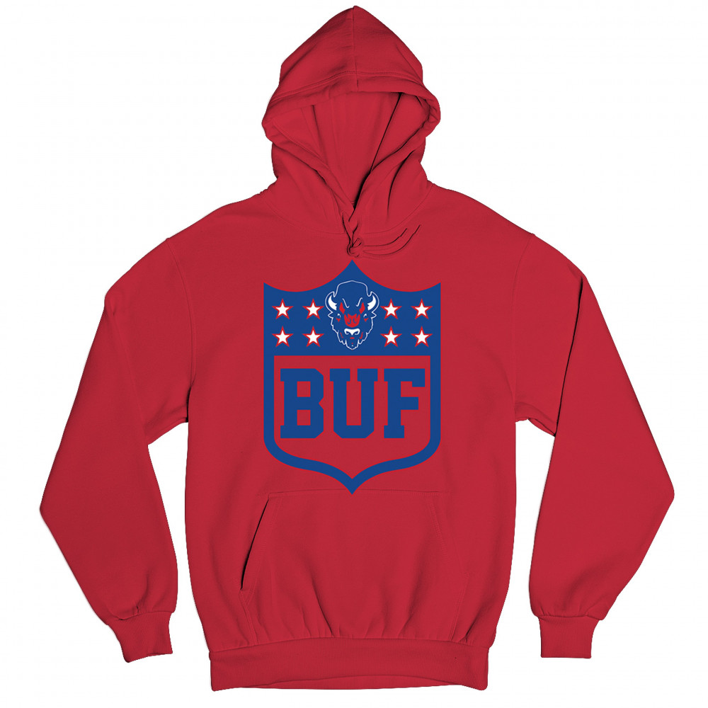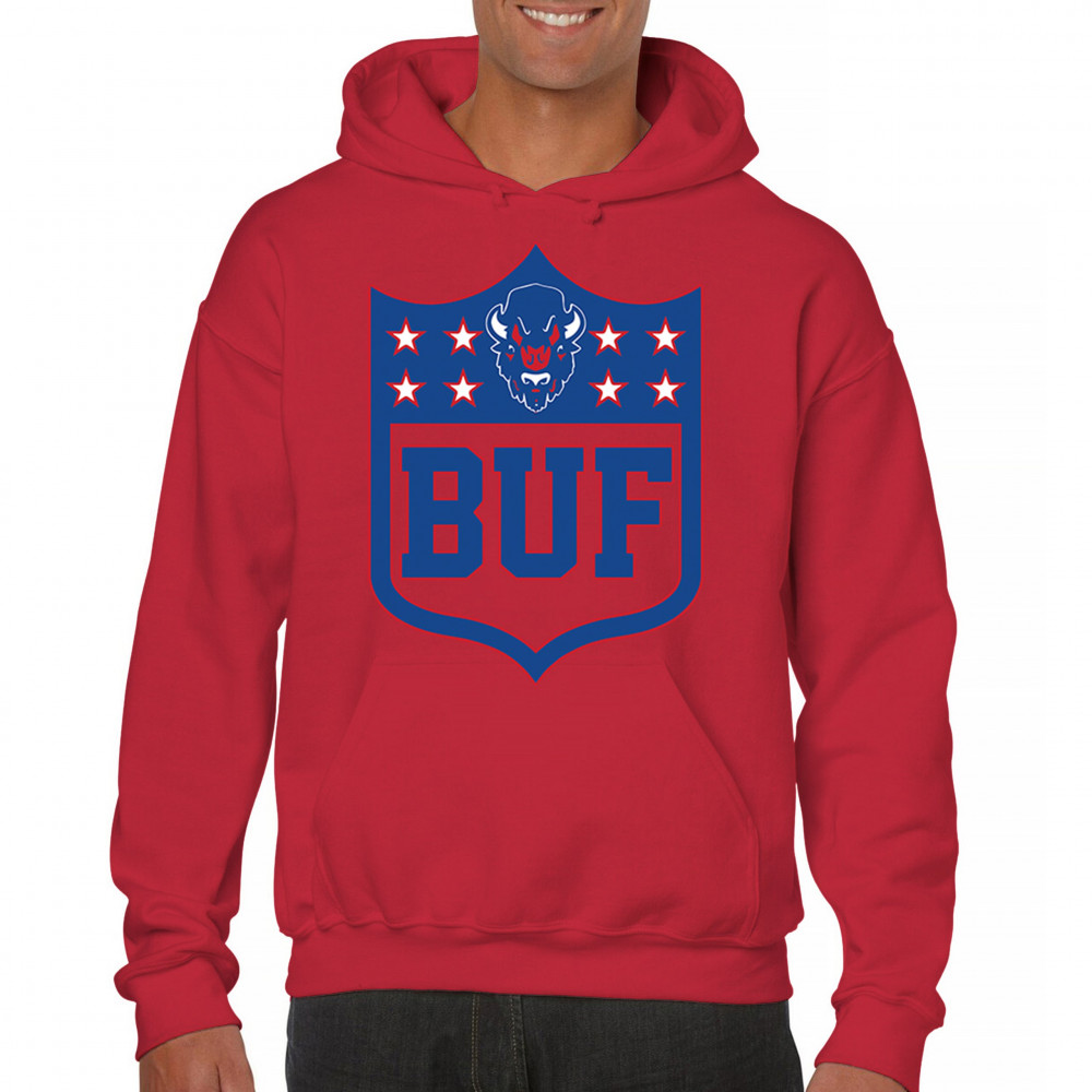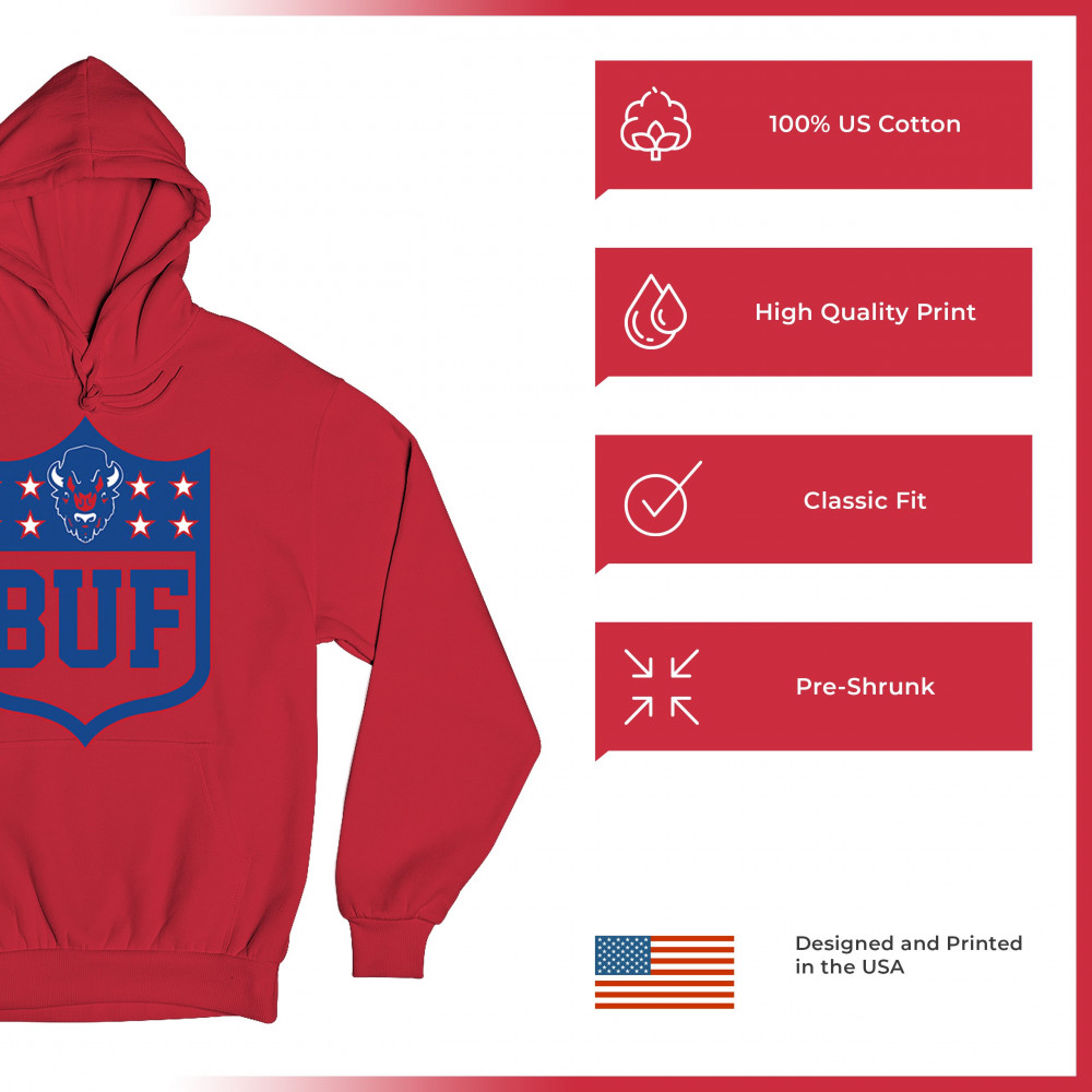 Bold Buffalo bison shield design for game day gear, tailgating, Sunday football, and championship pride in The Queen City.