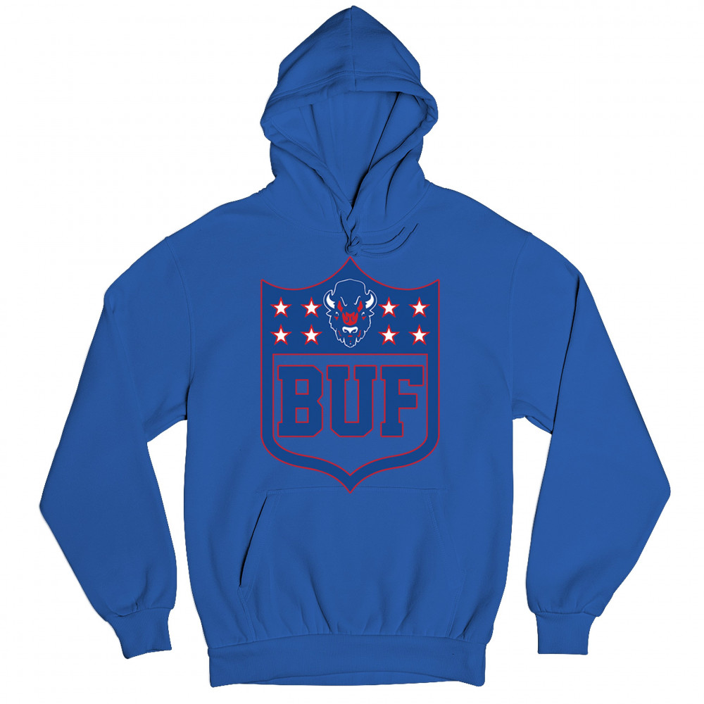 Bold Buffalo bison shield design for game day gear, tailgating, Sunday football, and championship pride in The Queen City.