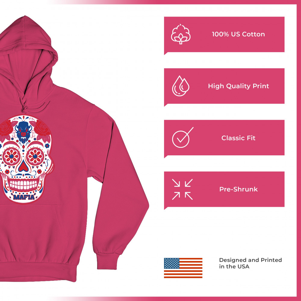 Celebrate Buffalo football with this Sugar Skull design inspired by Dia de los Muertos. Featuring NY Bleed Blue toughness, Northern Grit, and Queen City spirit, it’s made for tailgate parties, playoff energy, and fantasy football rivalries. A bold calavera for true Buffalo fans who live Game Day pride.