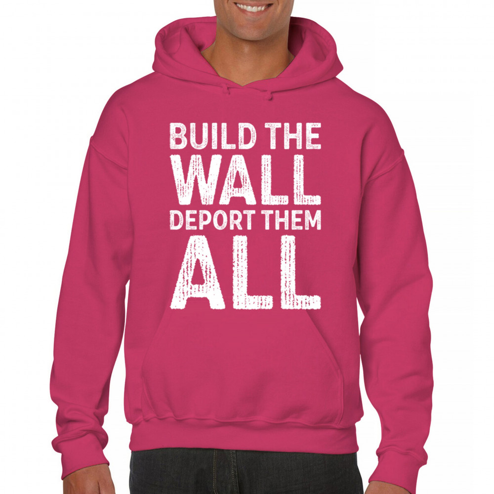 Stand strong for border security with our 'Build the Wall Deport Them All Trump 2024' tee. As a proud Trump supporter, join the America First movement and champion conservative values. Trust in God, not government, and reject the failed policies of Sleepy Joe. Let's go Brandon! Let the American flag wave high as we rally for victory in 2024.