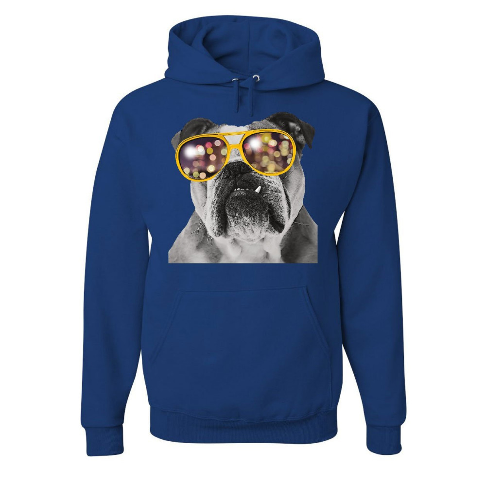 BULLDOG WEARING GLASSES hoodie cute dog swag pet lovers urban sweatshirt royal blue