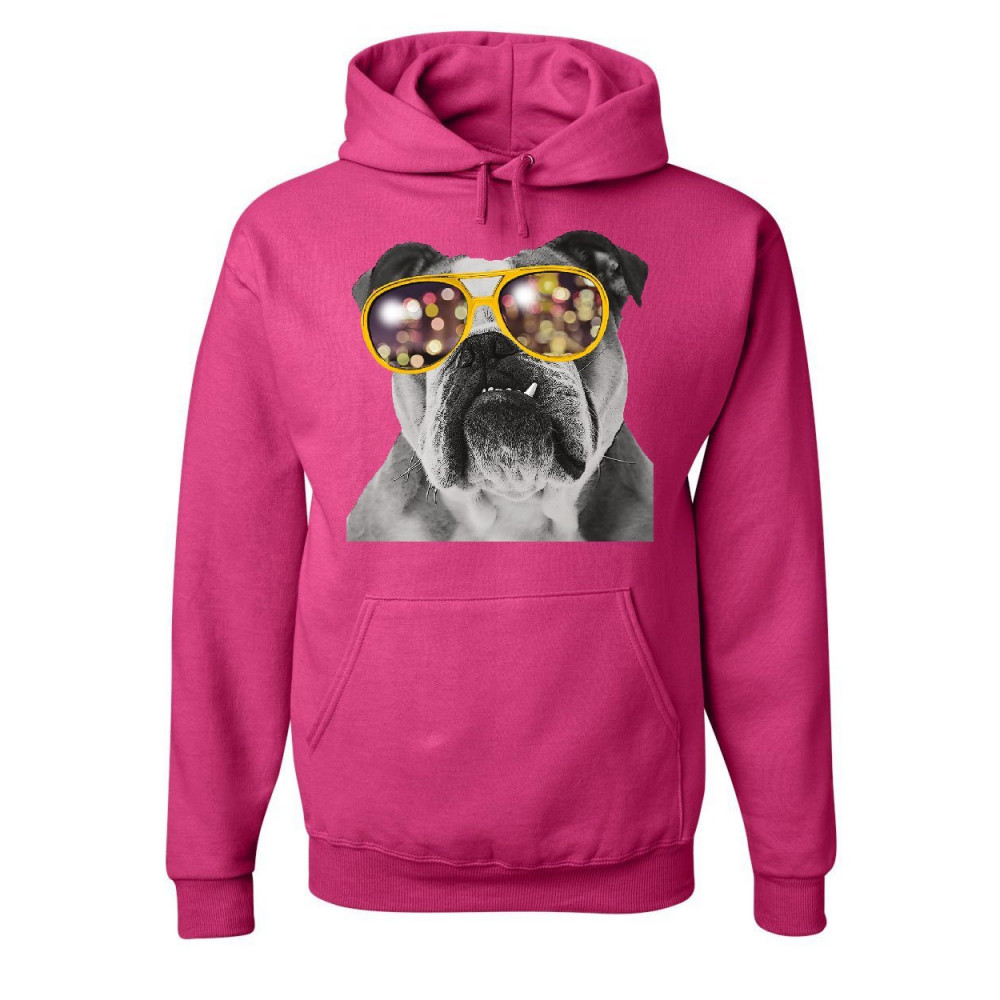 BULLDOG WEARING GLASSES hoodie cute dog swag pet lovers urban sweatshirt hot pink