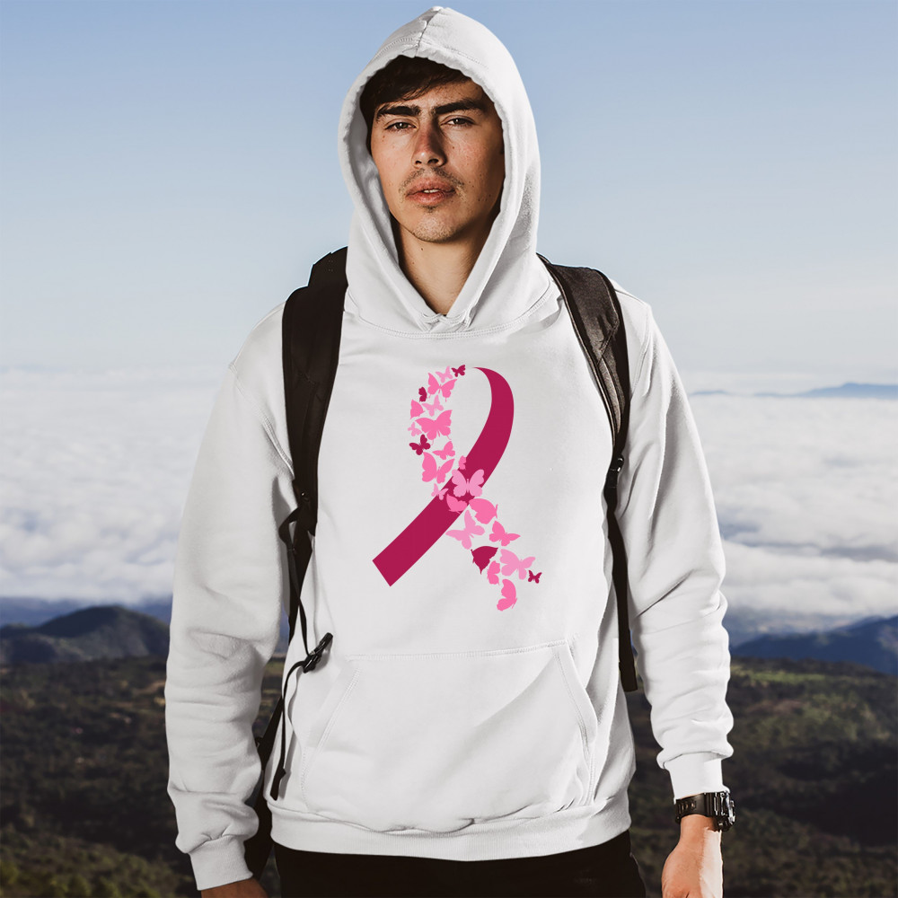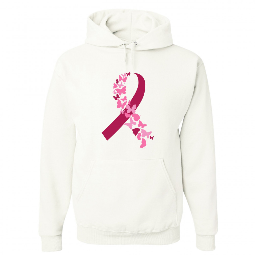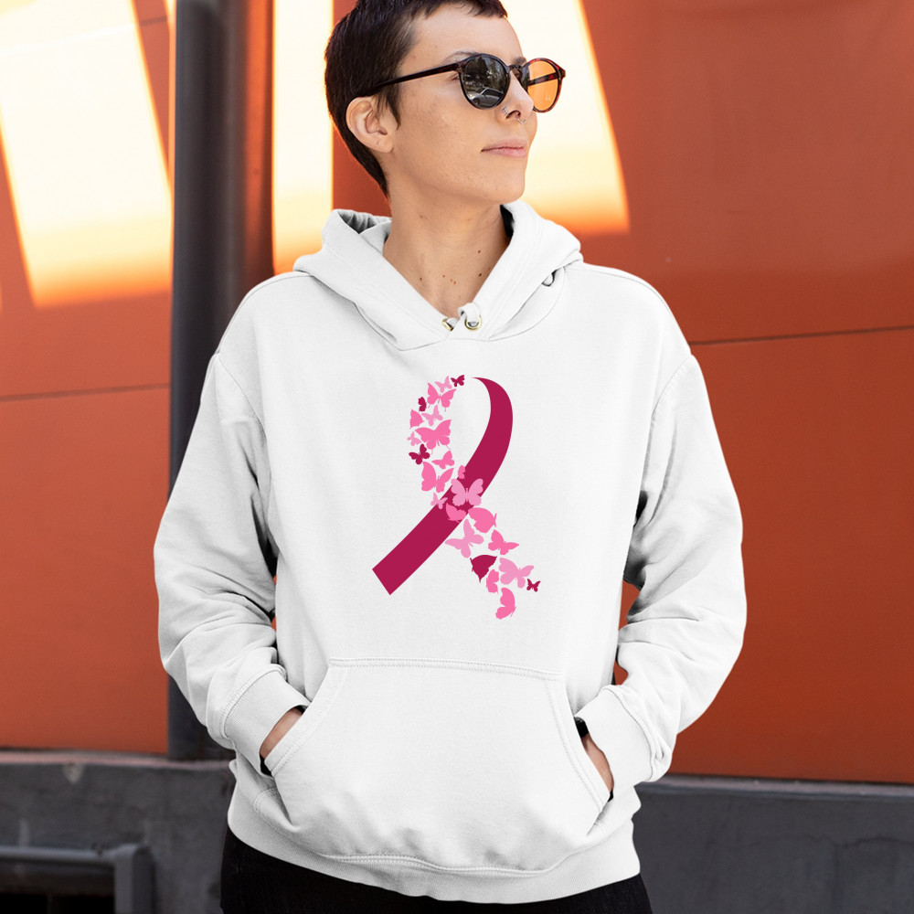 BUTTERFLIES PINK RIBBON sweatshirt breast cancer awareness hope hoodie white