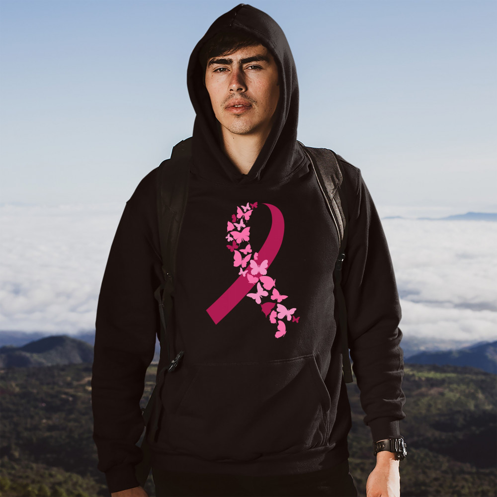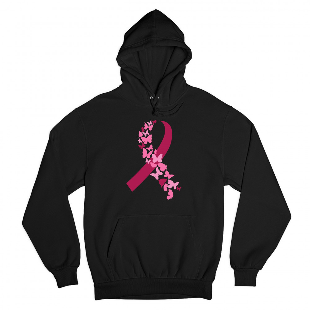 BUTTERFLIES PINK RIBBON sweatshirt breast cancer awareness hope hoodie black