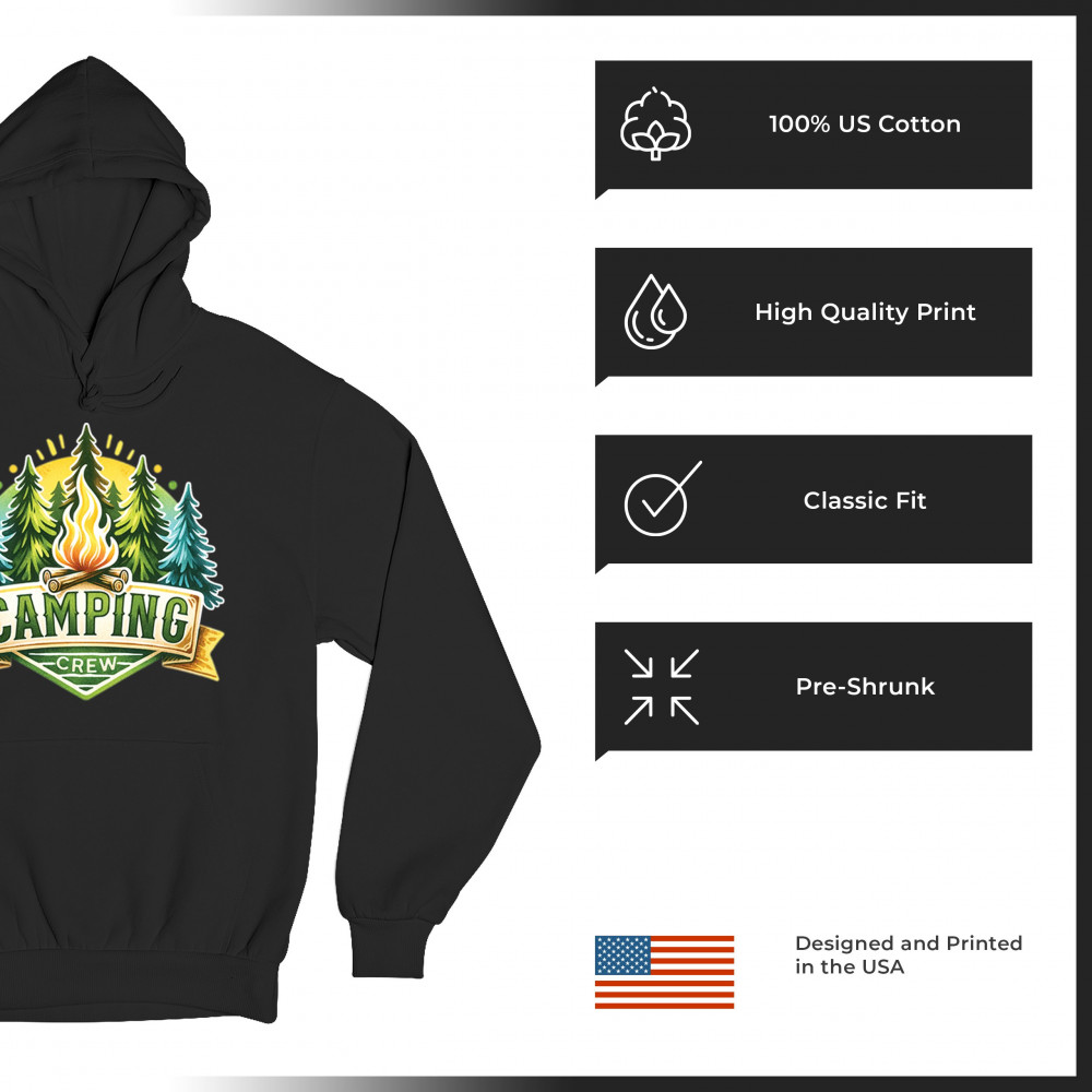 Camping Crew is made for trail lovers, glamping fans, and outdoorsmen who thrive in nature. Celebrate camping adventures, campfire moments, and wilderness vibes with this fun, cozy design. Perfect for family trips, forest escapes, and national park exploration in any season.