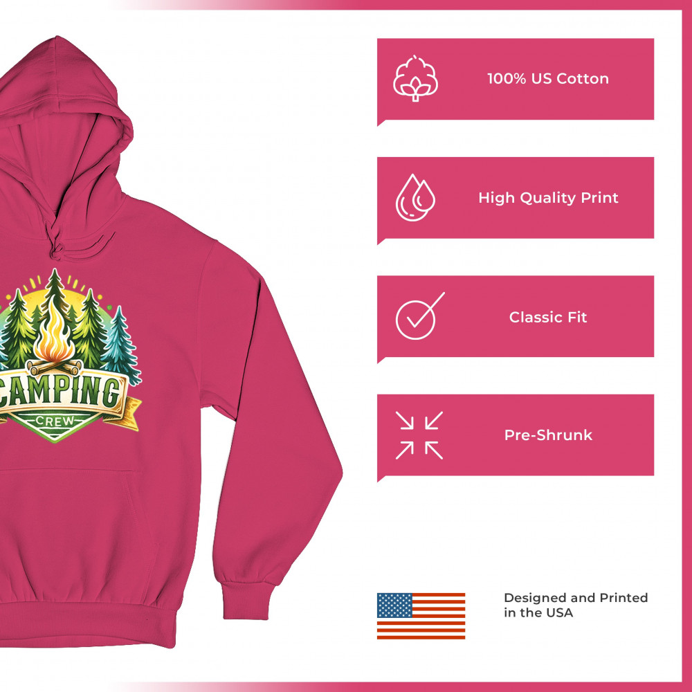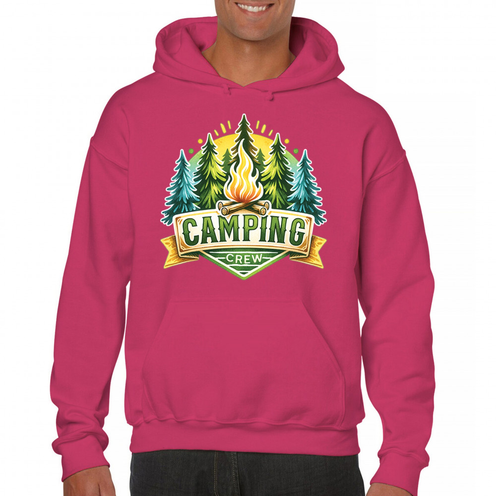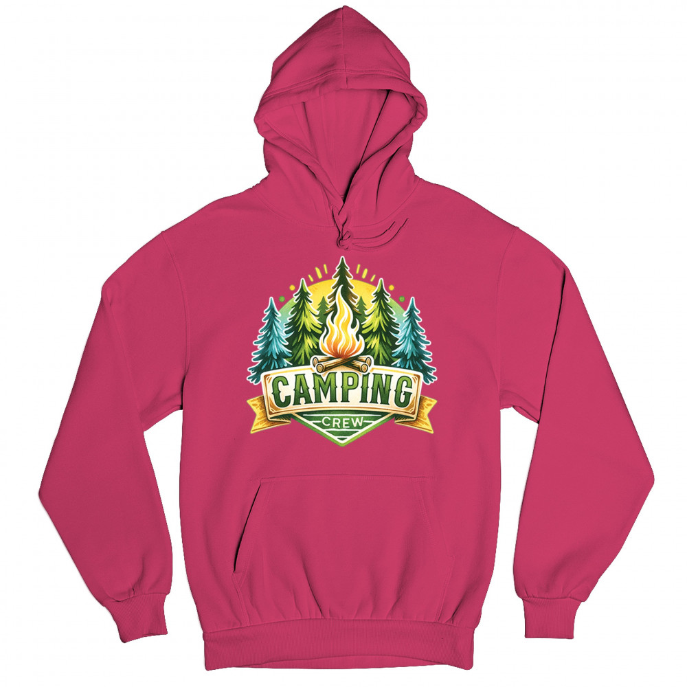 CAMPING CREW unisex hoodie happy camper vibe explore outdoors campfire pink