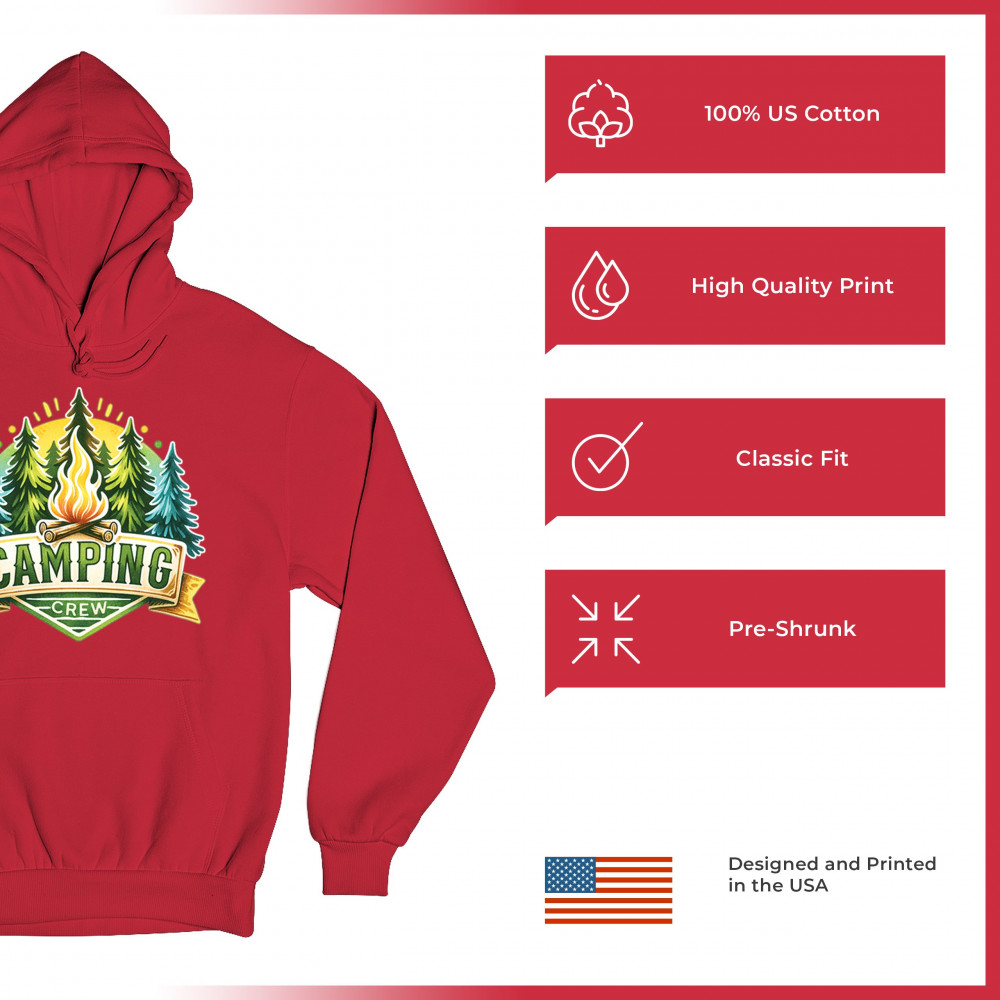 Camping Crew is made for trail lovers, glamping fans, and outdoorsmen who thrive in nature. Celebrate camping adventures, campfire moments, and wilderness vibes with this fun, cozy design. Perfect for family trips, forest escapes, and national park exploration in any season.