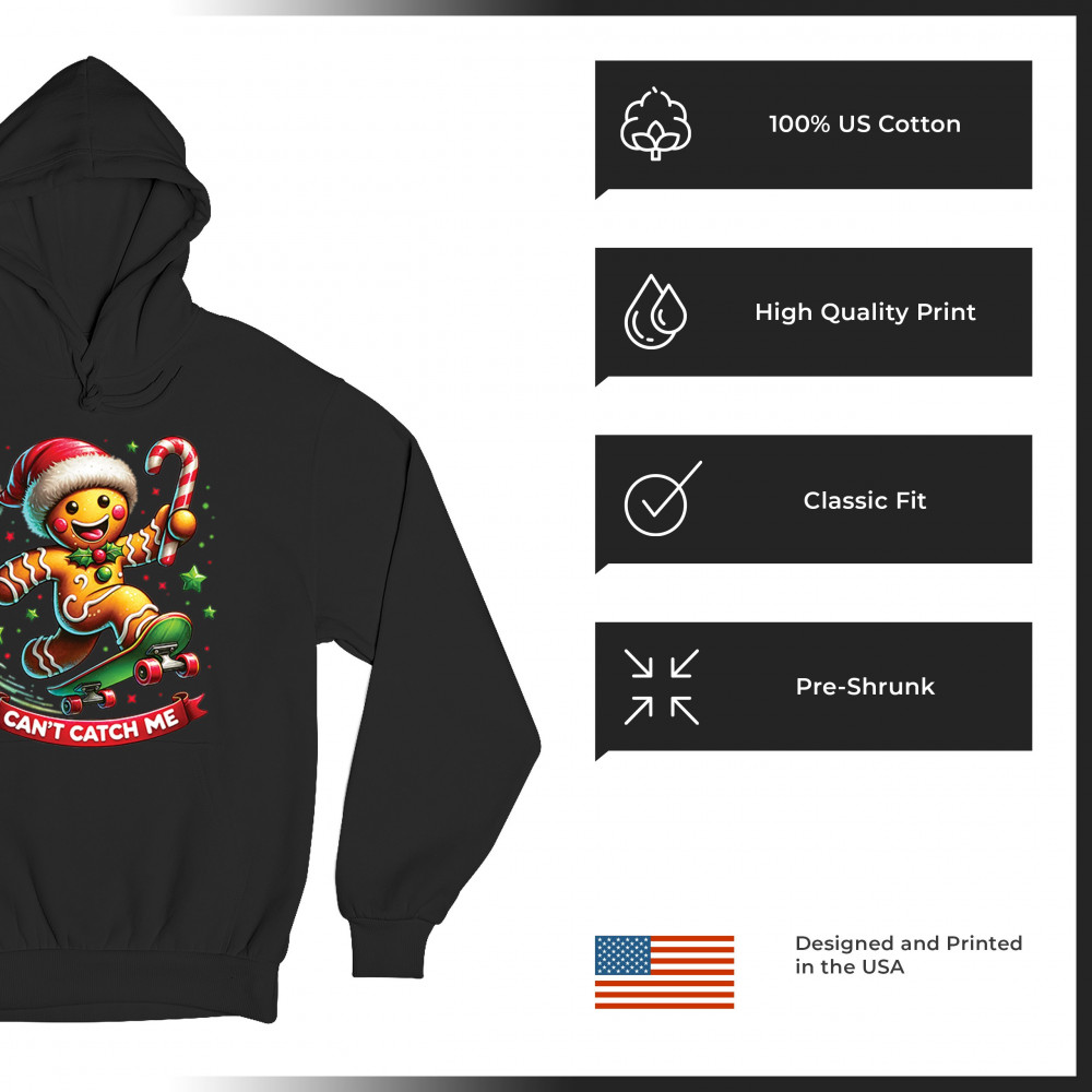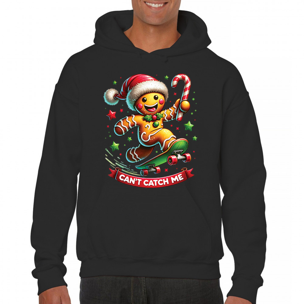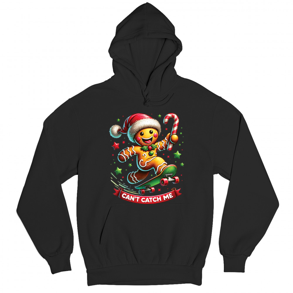 A fun Christmas design featuring a gingerbread character on a skateboard, candy cane in hand, and bright festive colors. Perfect for holiday party outfits, family gatherings, Christmas photos, festive humor fans, stocking stuffer gifting, winter celebrations, and anyone who loves playful seasonal graphics with cheerful personality.