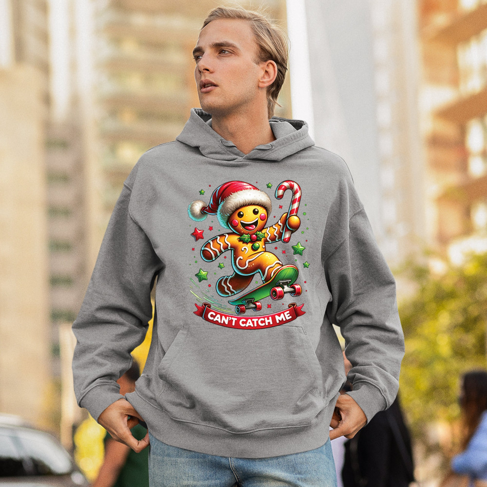 A fun Christmas design featuring a gingerbread character on a skateboard, candy cane in hand, and bright festive colors. Perfect for holiday party outfits, family gatherings, Christmas photos, festive humor fans, stocking stuffer gifting, winter celebrations, and anyone who loves playful seasonal graphics with cheerful personality.