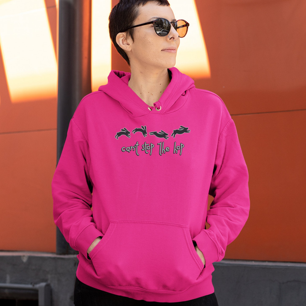 CAN'T STOP THE HOP sweatshirt happy easter funny hopping rabbits hoodie pink