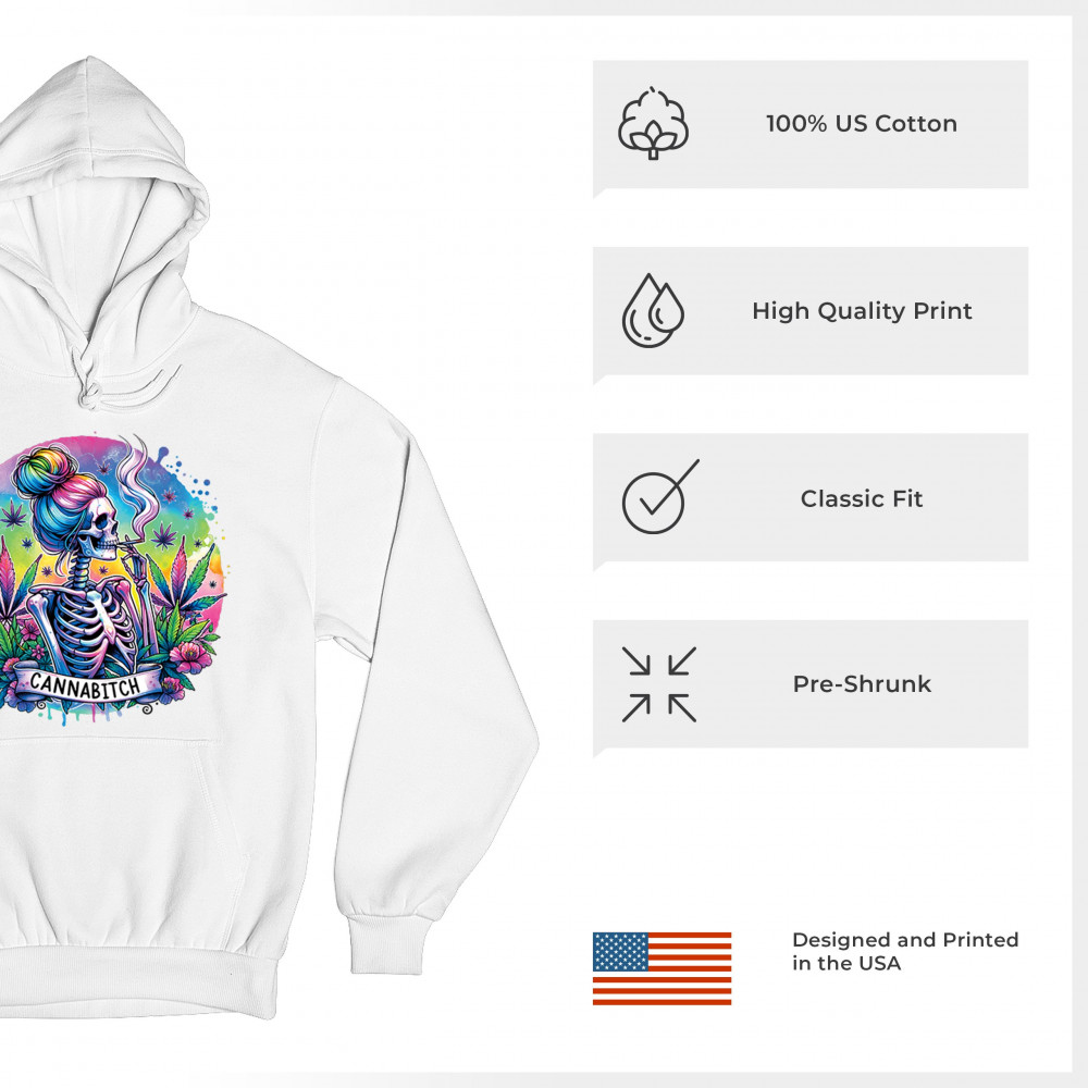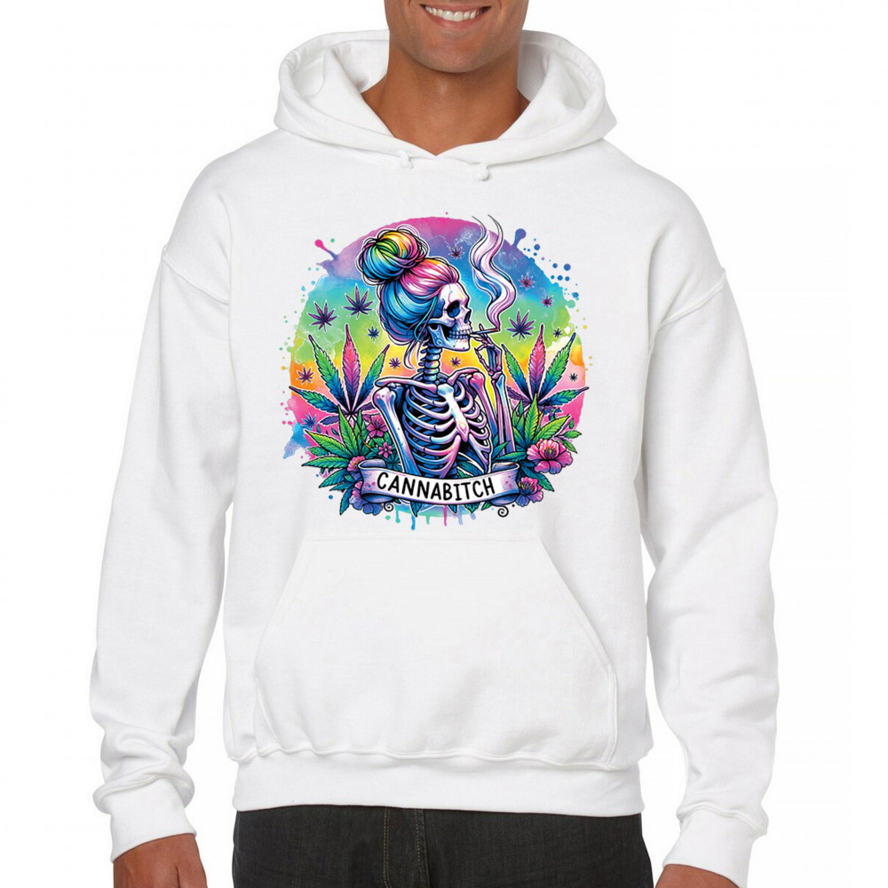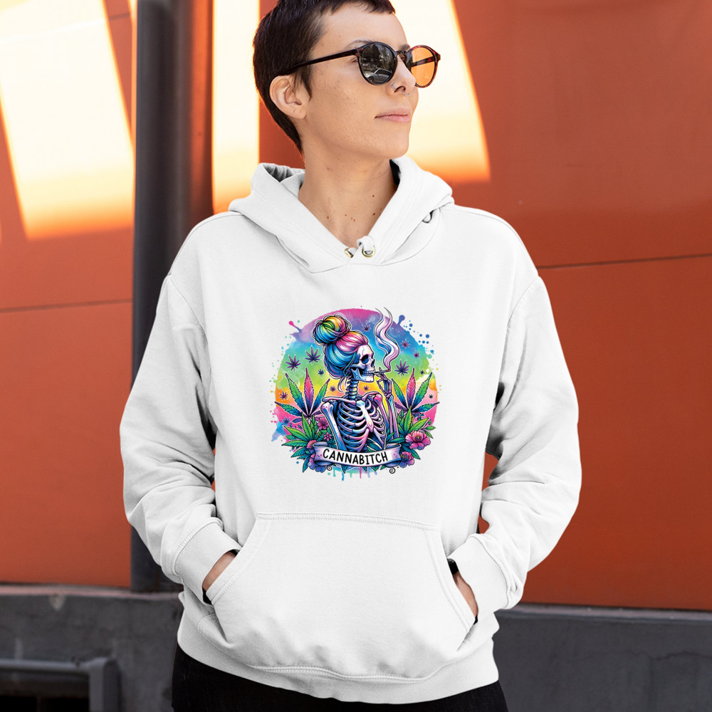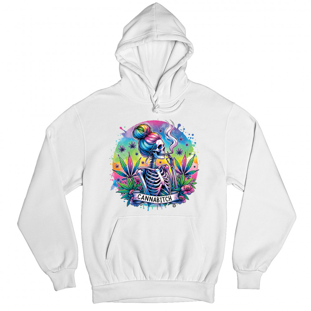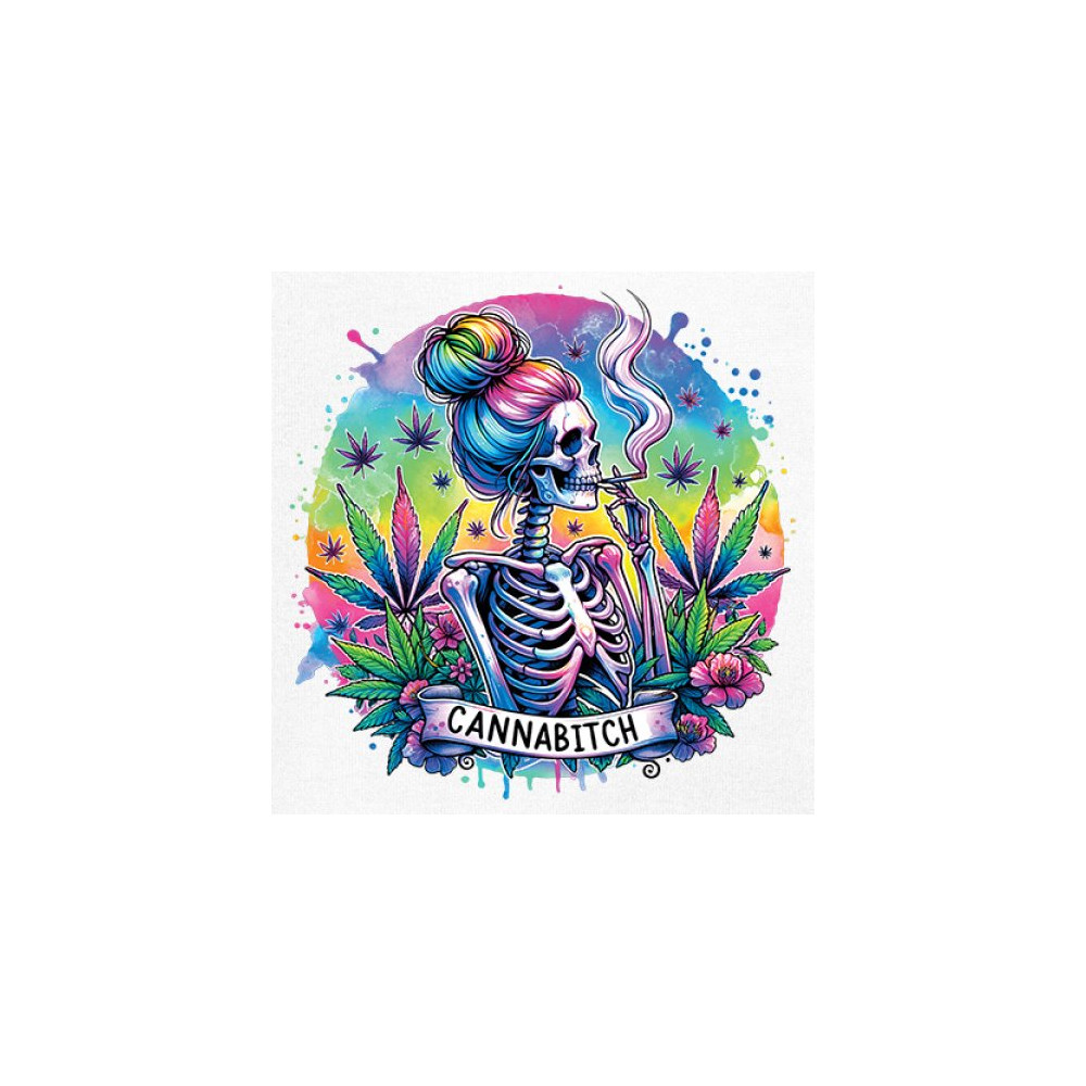 Unleash your inner weed queen with this CANNABITCH design—a psychedelic rainbow skeleton with major stoner girl energy. Dripping in neon colors, bold bud leaves, and fierce feminine vibes, it's a head-turning graphic for cannabis culture lovers, party girls, and unapologetically high women.