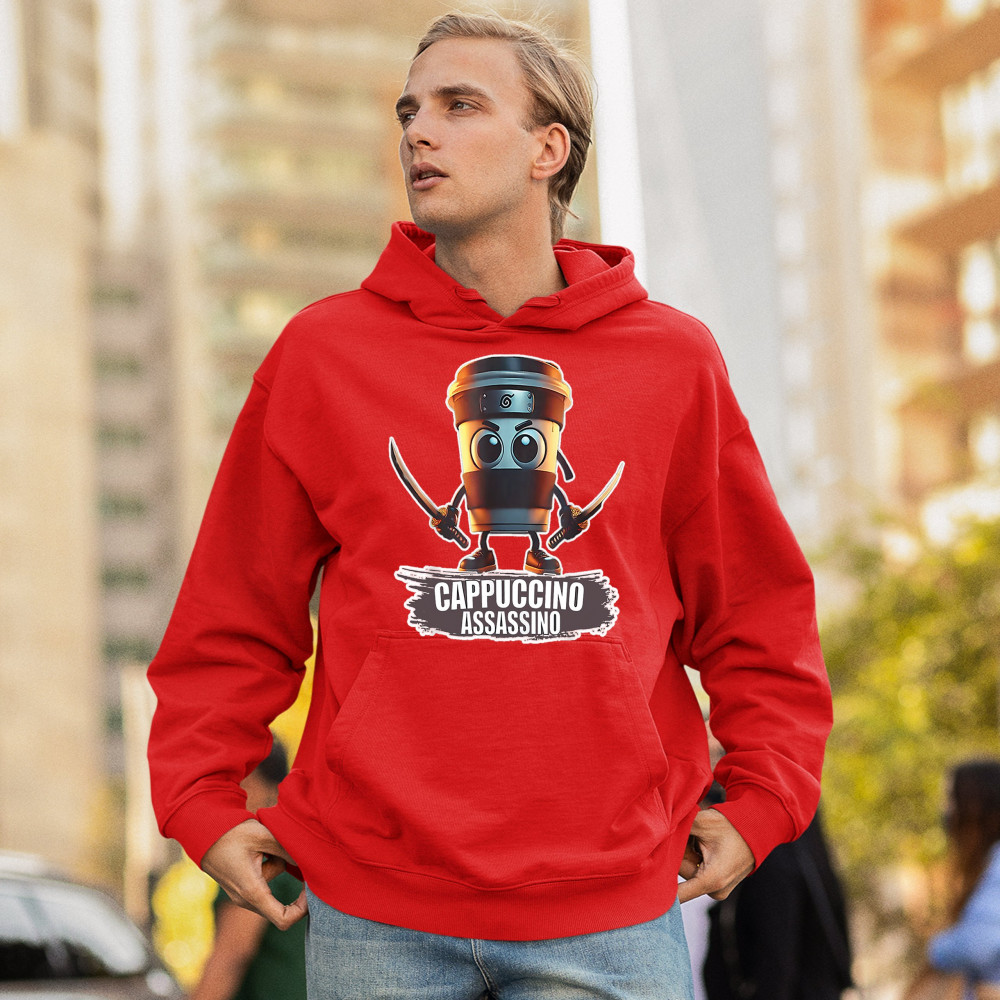 Cappuccino Assassino fuses cursed coffee memes, ninja chaos, ironic TikTok fashion, espresso humor, and Gen Z internet absurdity.