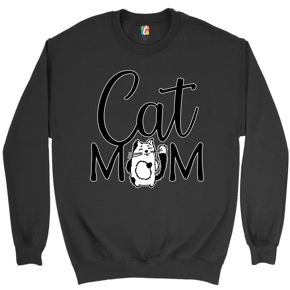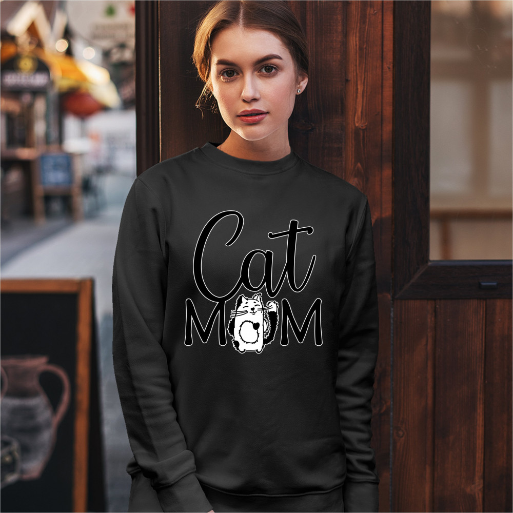 CAT MOM sweatshirt mother's day fur mama cat lover kitty crewneck black