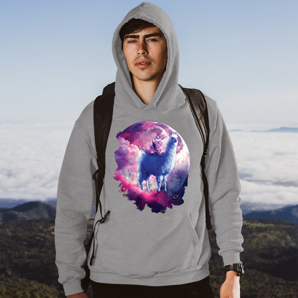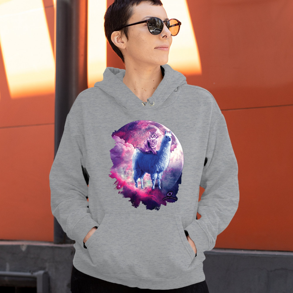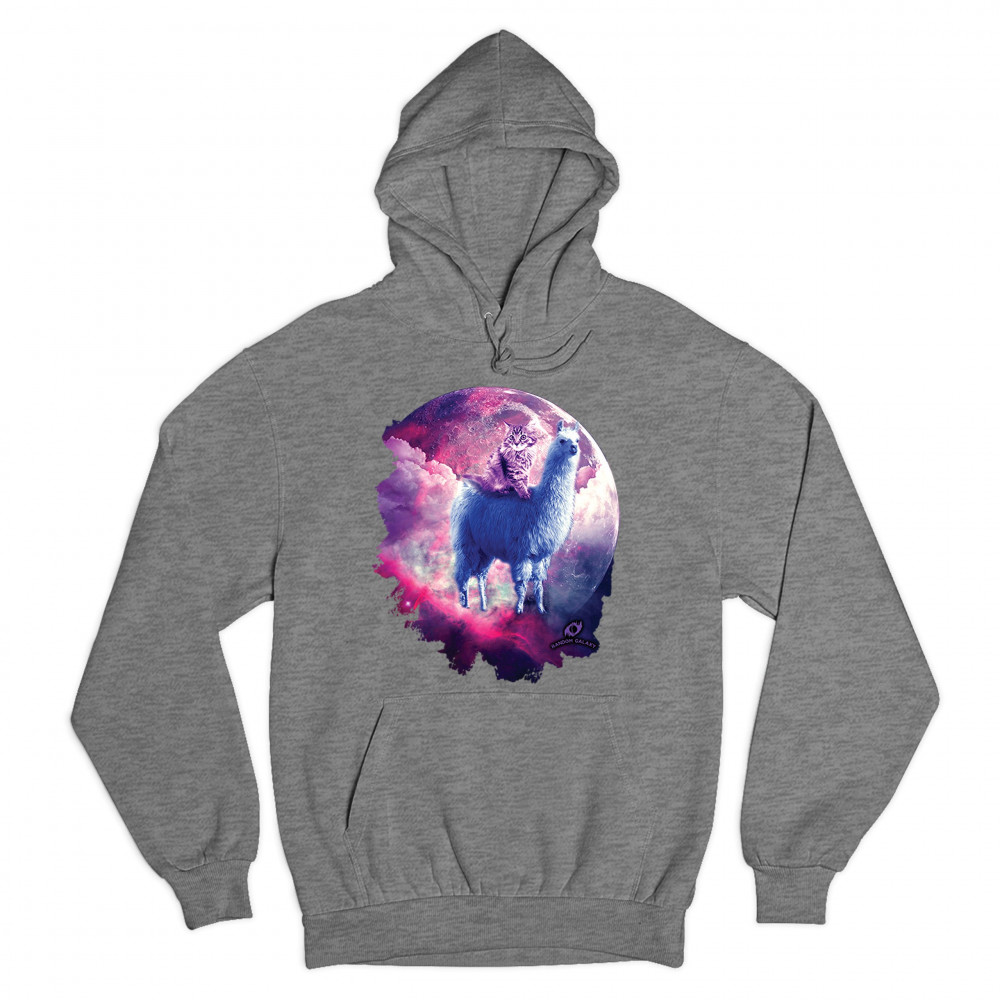 CAT RIDING A LLAMA IN SPACE sweatshirt weird galaxy moon creative hoodie gray