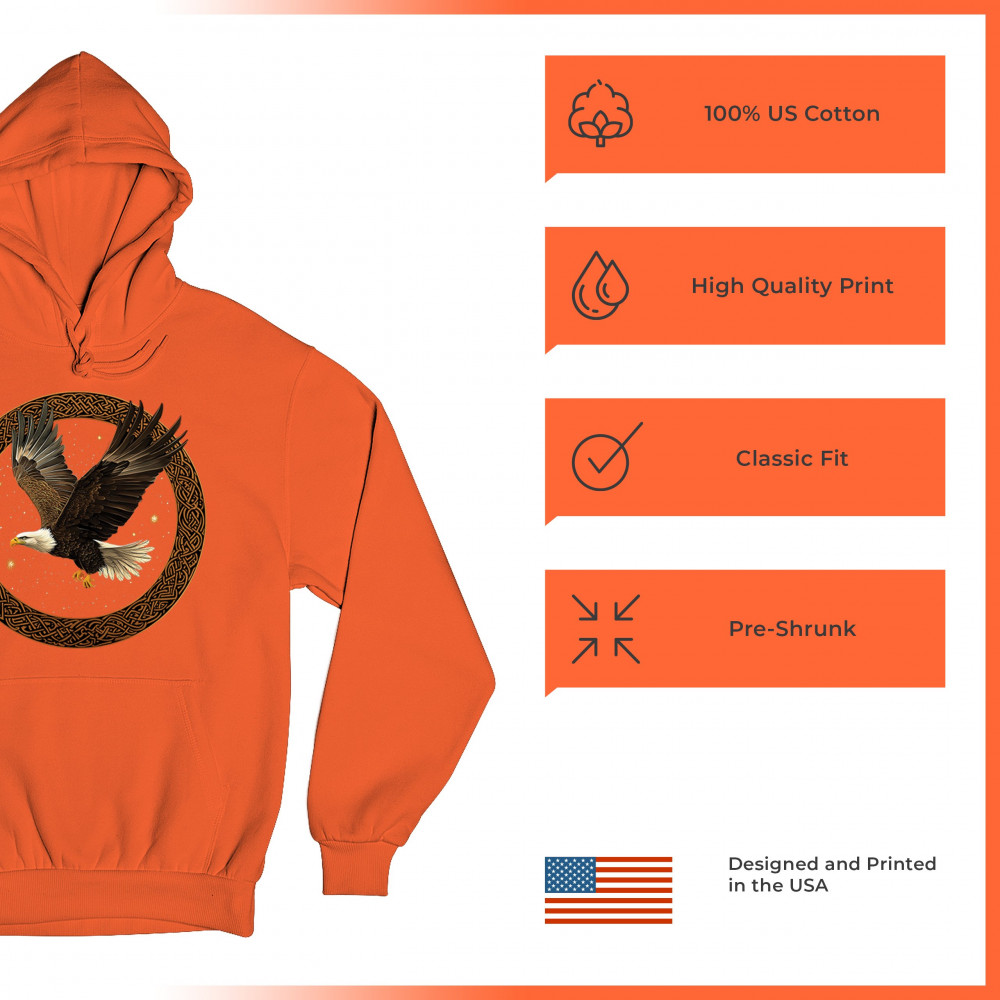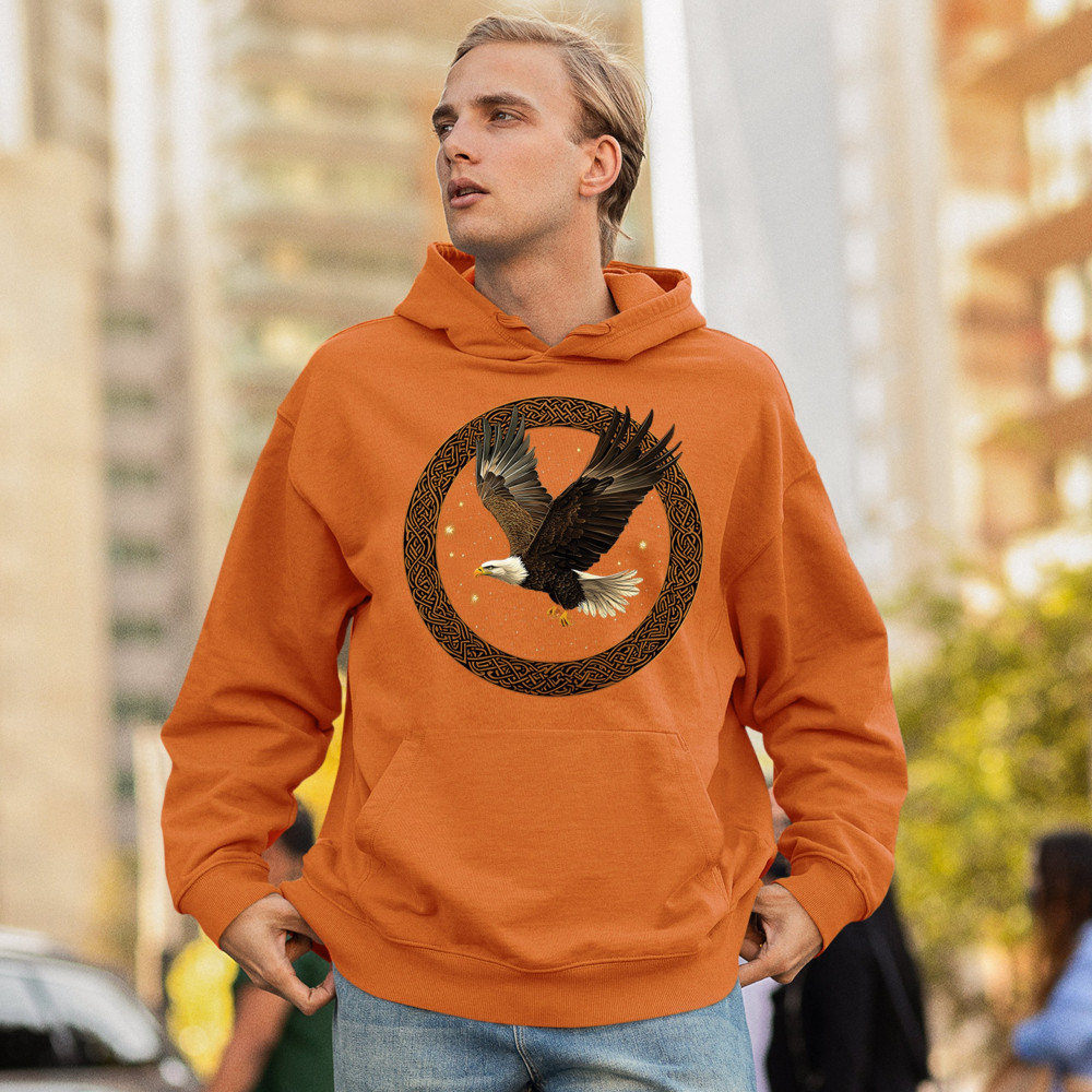 This powerful bald eagle takes flight within a Celtic knotwork circle, radiating strength, independence, and cosmic energy. The glowing stars and celestial background add mystic symbolism, blending nature, tribal design, and spirituality. Perfect for patriots, spiritual seekers, and bird enthusiasts.