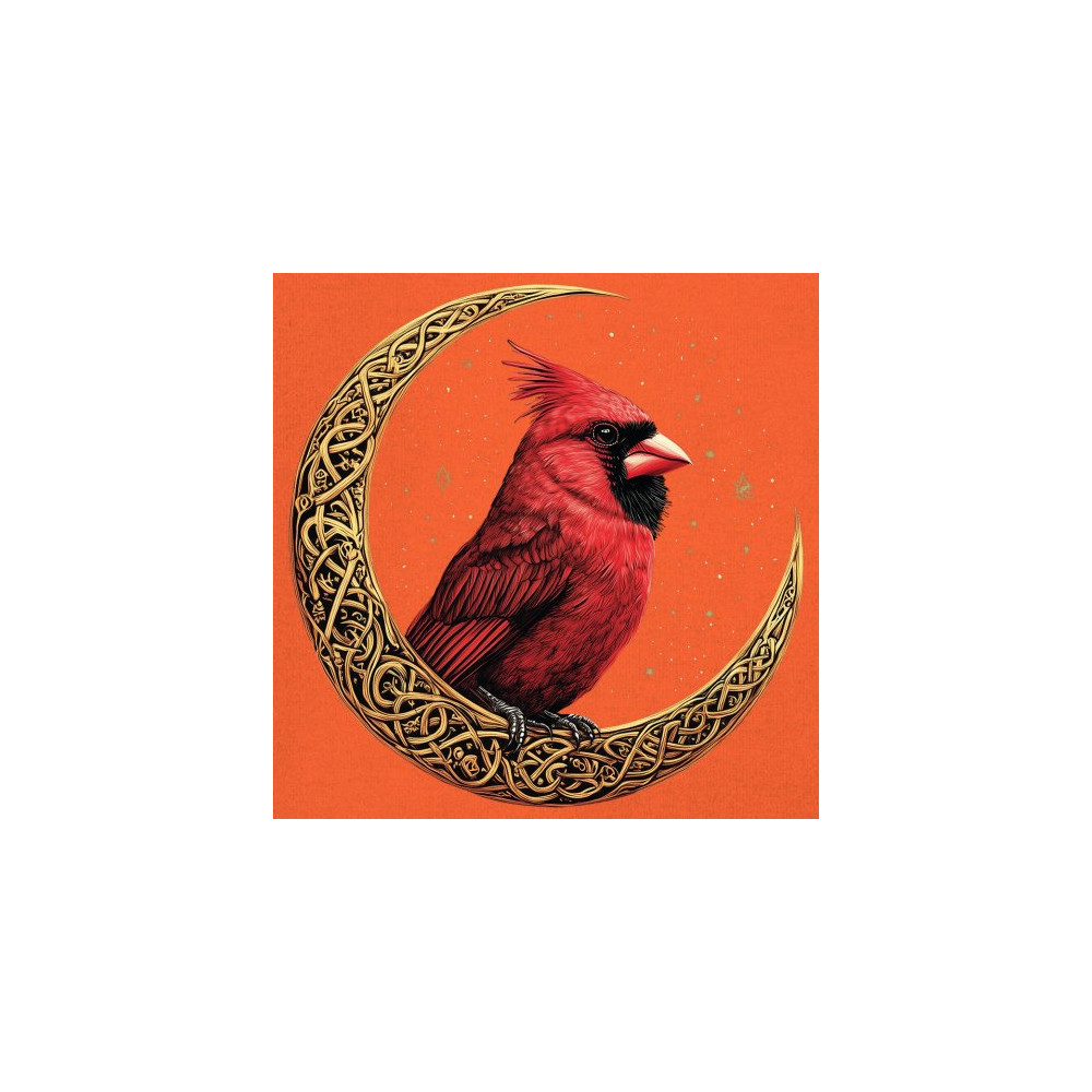 Mystical cardinal with Celtic moon and stars—perfect for nature lovers, spiritual souls, and those honoring love, loss, or remembrance.
