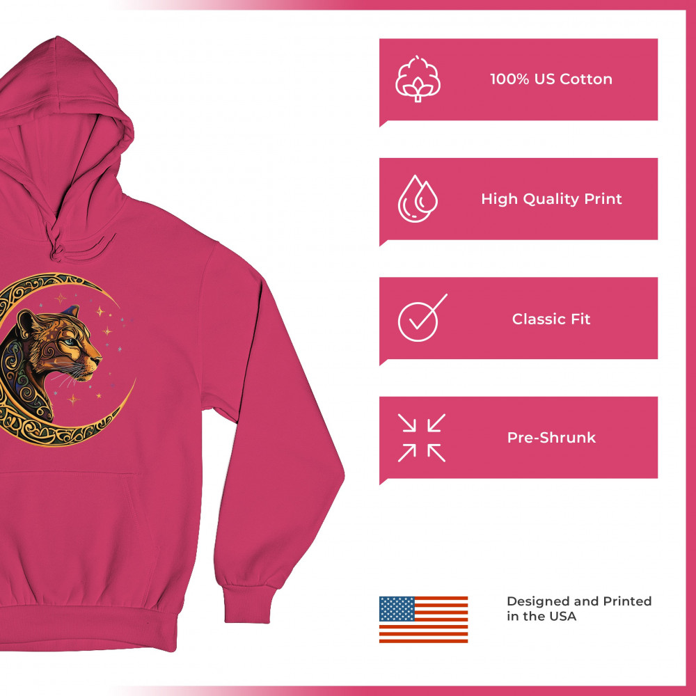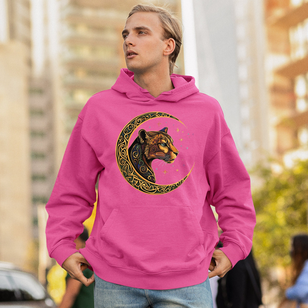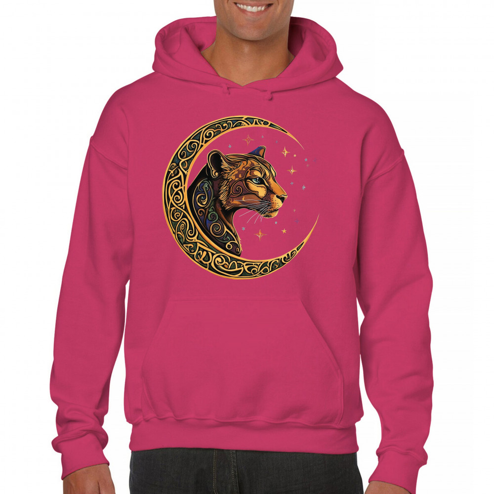 Mystical and elegant, this celestial leopard design merges wild animal strength with spiritual energy. Framed by a golden Celtic crescent moon and set against a starlit sky, it captures themes of nature, intuition, tribal symbolism, fantasy, and feminine power. Ideal for astrology fans, animal lovers, and seekers of cosmic connection.