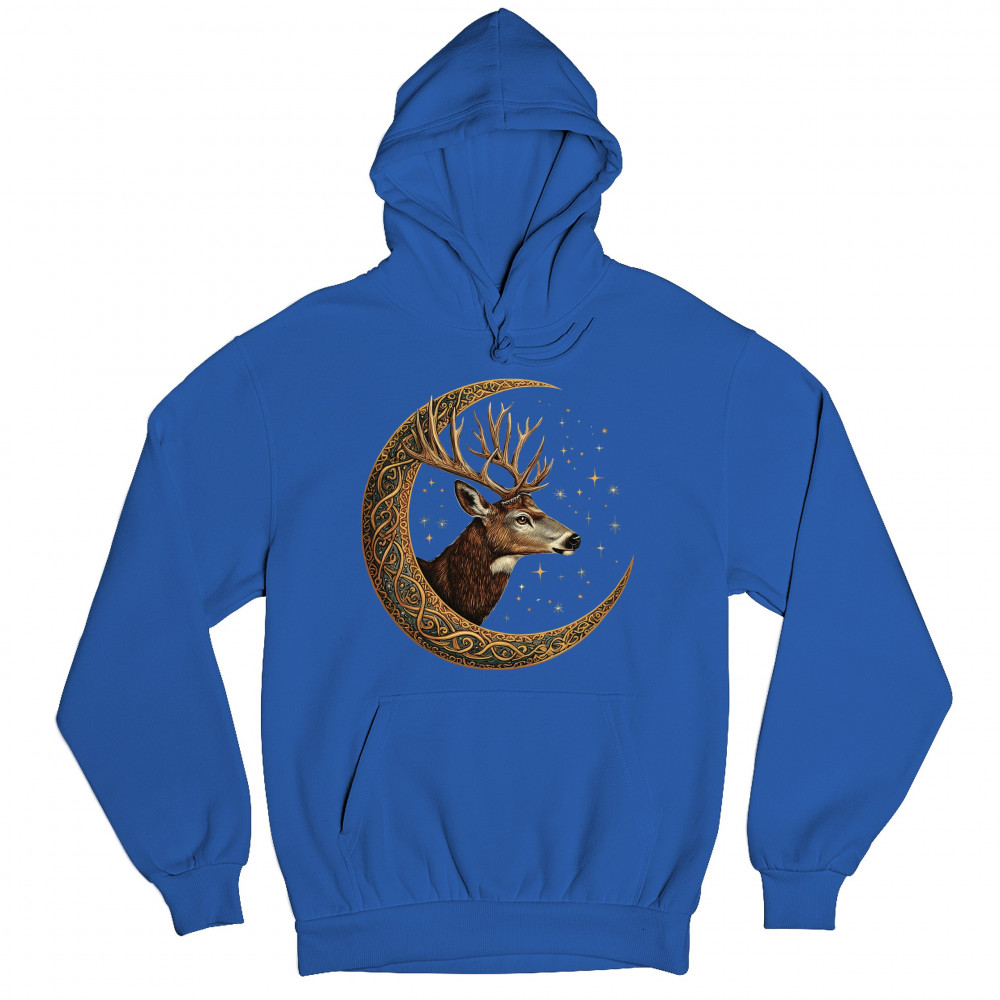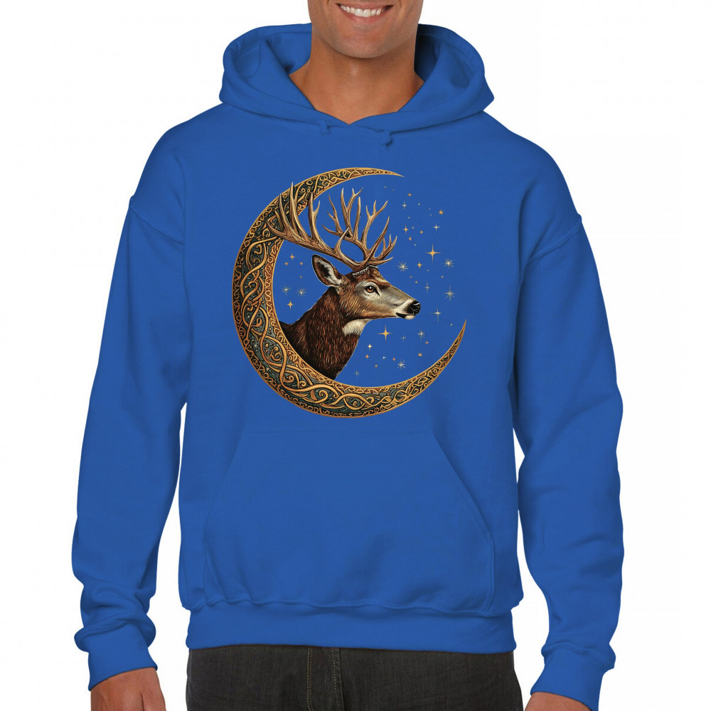 Majestic deer in Celtic moon with stars—symbol of protection, nature, and cosmic wisdom. A mystical gift for hunters, druids, and forest lovers.