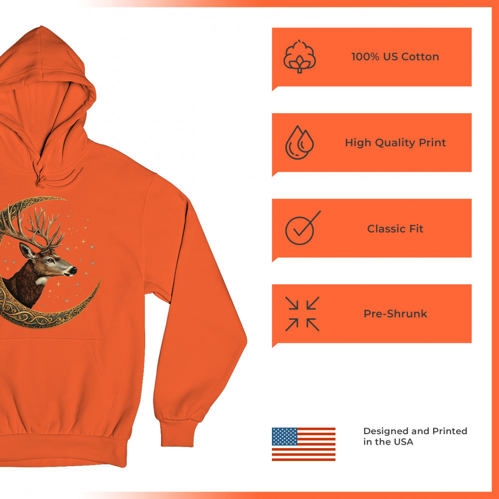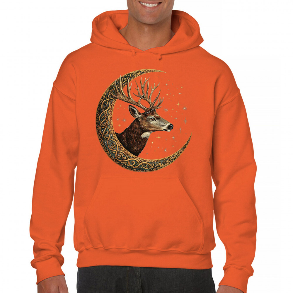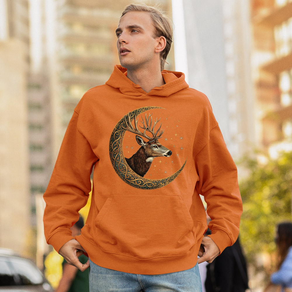 Majestic deer in Celtic moon with stars—symbol of protection, nature, and cosmic wisdom. A mystical gift for hunters, druids, and forest lovers.