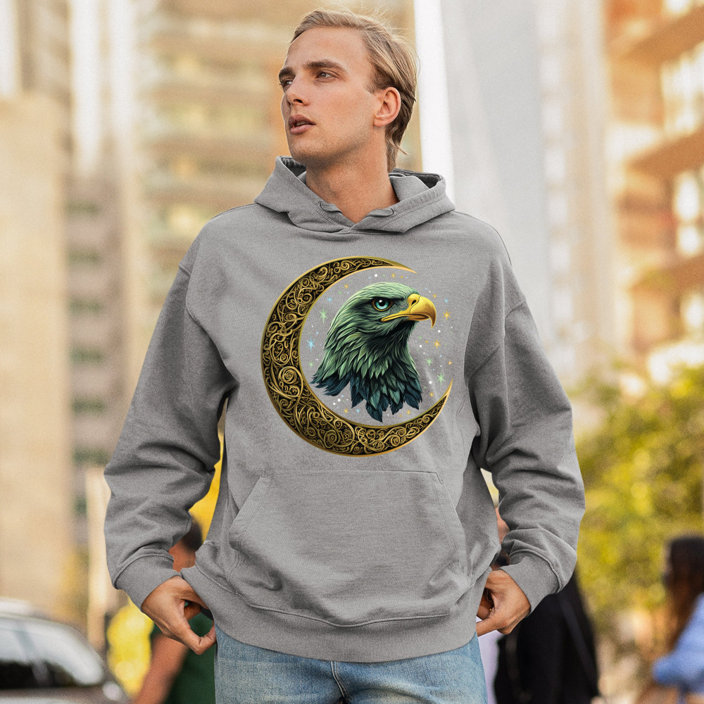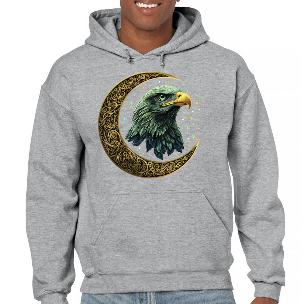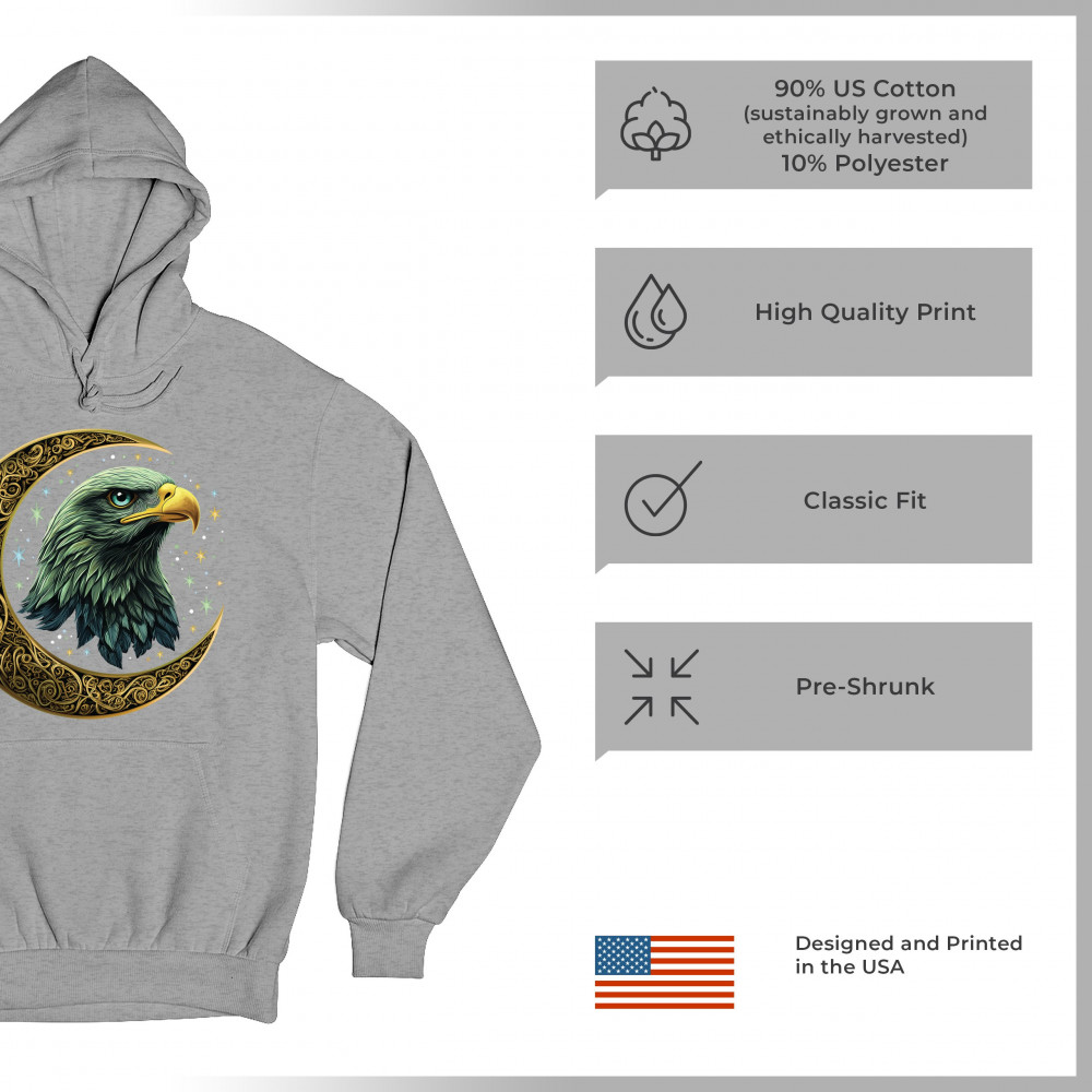 Majestic eagle in golden Celtic moon with stars—symbol of strength, vision, and freedom. Perfect for patriots, spiritual seekers, and nature lovers.