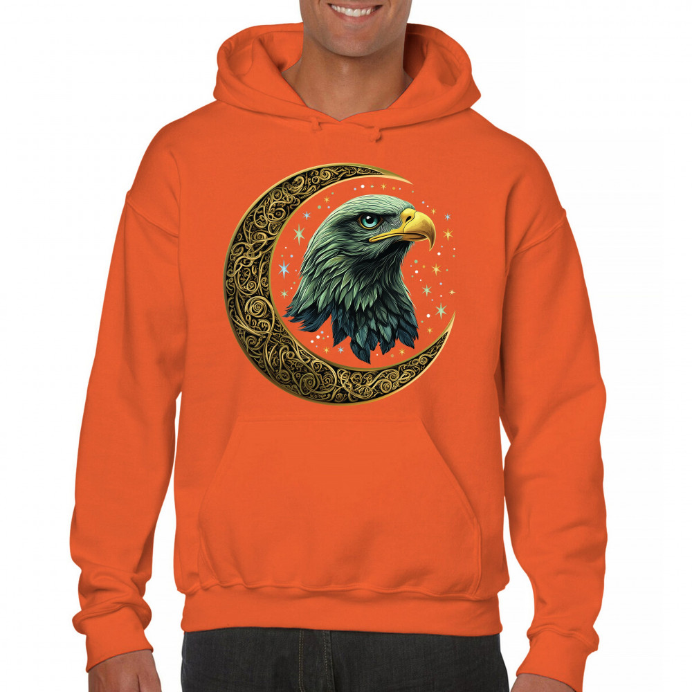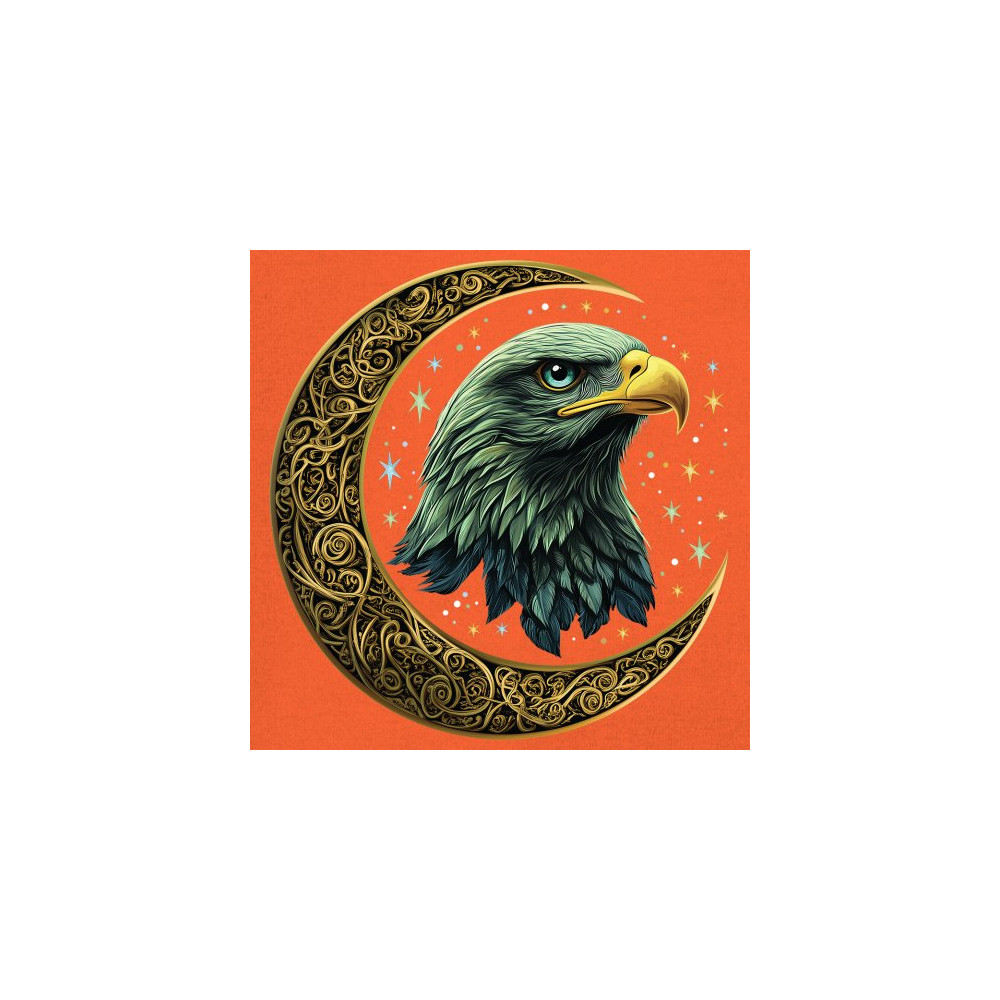 Majestic eagle in golden Celtic moon with stars—symbol of strength, vision, and freedom. Perfect for patriots, spiritual seekers, and nature lovers.