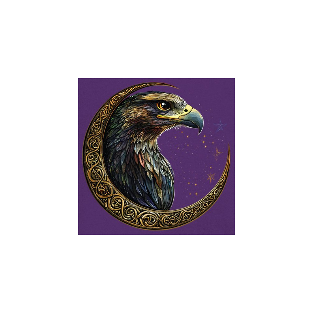 Vibrant eagle in Celtic moon with cosmic background. Represents freedom, vision, and spiritual strength—perfect for bird lovers and seekers.