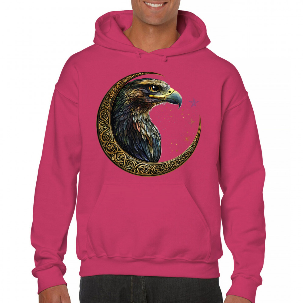 Vibrant eagle in Celtic moon with cosmic background. Represents freedom, vision, and spiritual strength—perfect for bird lovers and seekers.