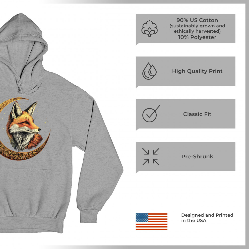 Embrace the spirit of the forest with this striking red fox framed by a golden Celtic crescent moon. The design blends animal symbolism with cosmic wonder, showcasing intuition, cleverness, and spiritual insight. A perfect match for nature lovers, folklore fans, mystics, and metaphysical art enthusiasts.