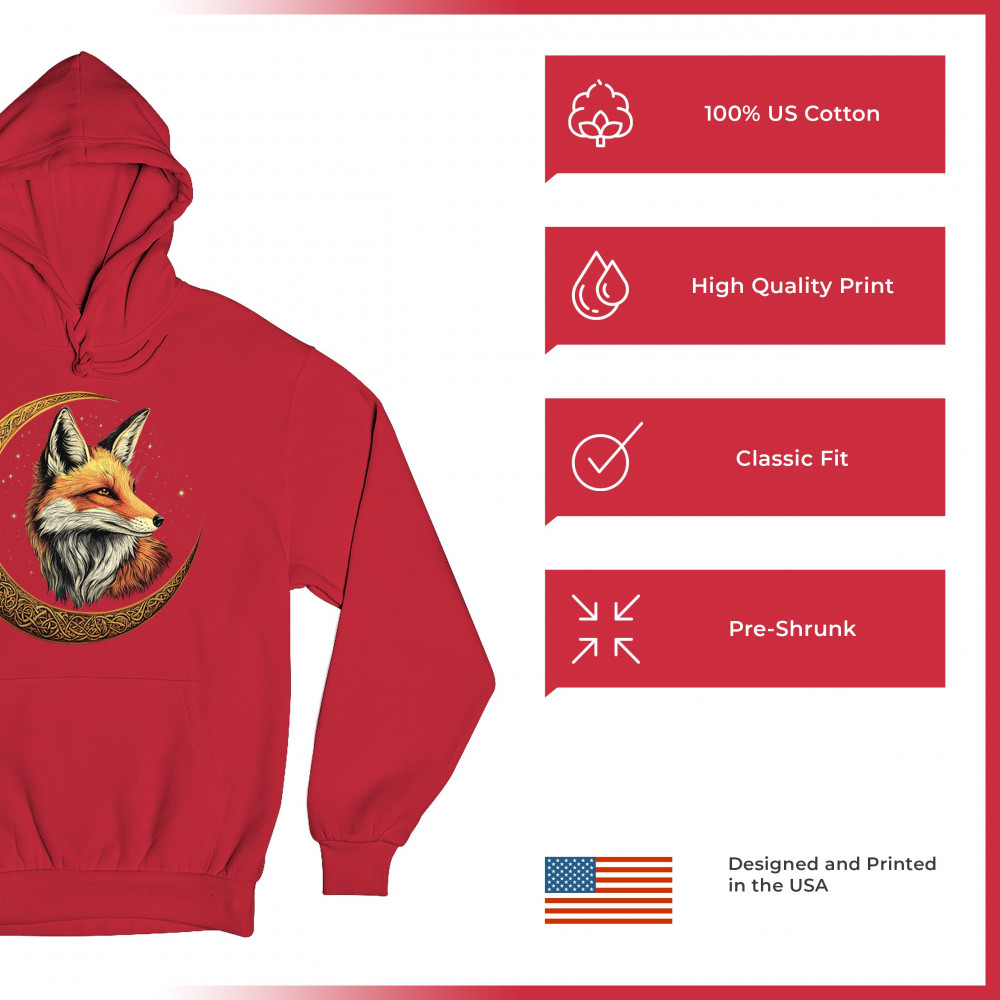 Embrace the spirit of the forest with this striking red fox framed by a golden Celtic crescent moon. The design blends animal symbolism with cosmic wonder, showcasing intuition, cleverness, and spiritual insight. A perfect match for nature lovers, folklore fans, mystics, and metaphysical art enthusiasts.