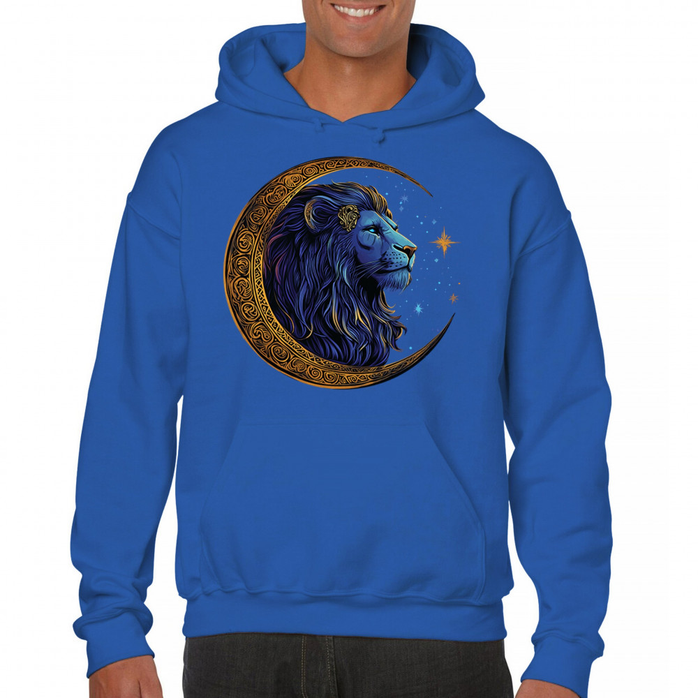 This celestial lion design features a majestic mane framed by a golden Celtic crescent moon, symbolizing leadership, courage, and wild spirit. Perfect for Leo zodiac signs, mystic seekers, and fantasy fans, this artwork blends tribal symbolism, cosmic energy, and regal power in one visually stunning tribute to inner strength.