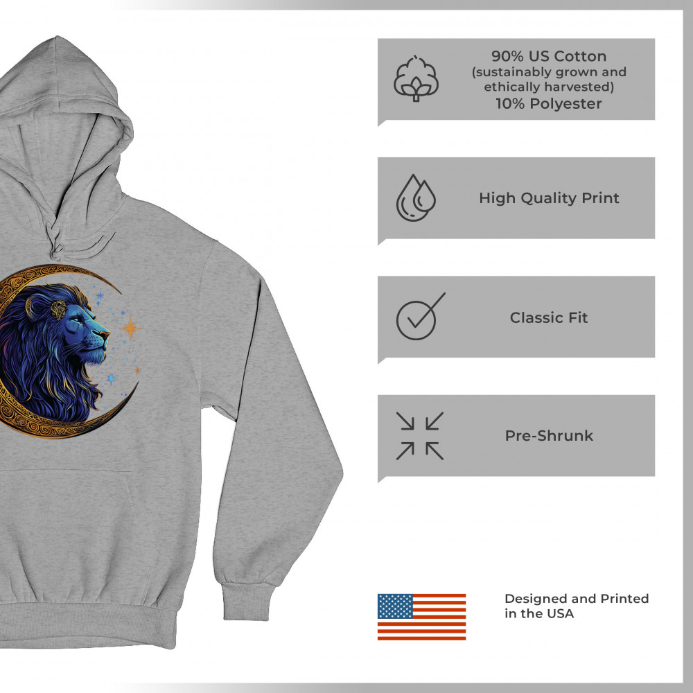 Majestic lion in Celtic crescent moon design—ideal for Leos, fantasy fans, and spiritual seekers drawn to strength and celestial symbolism.