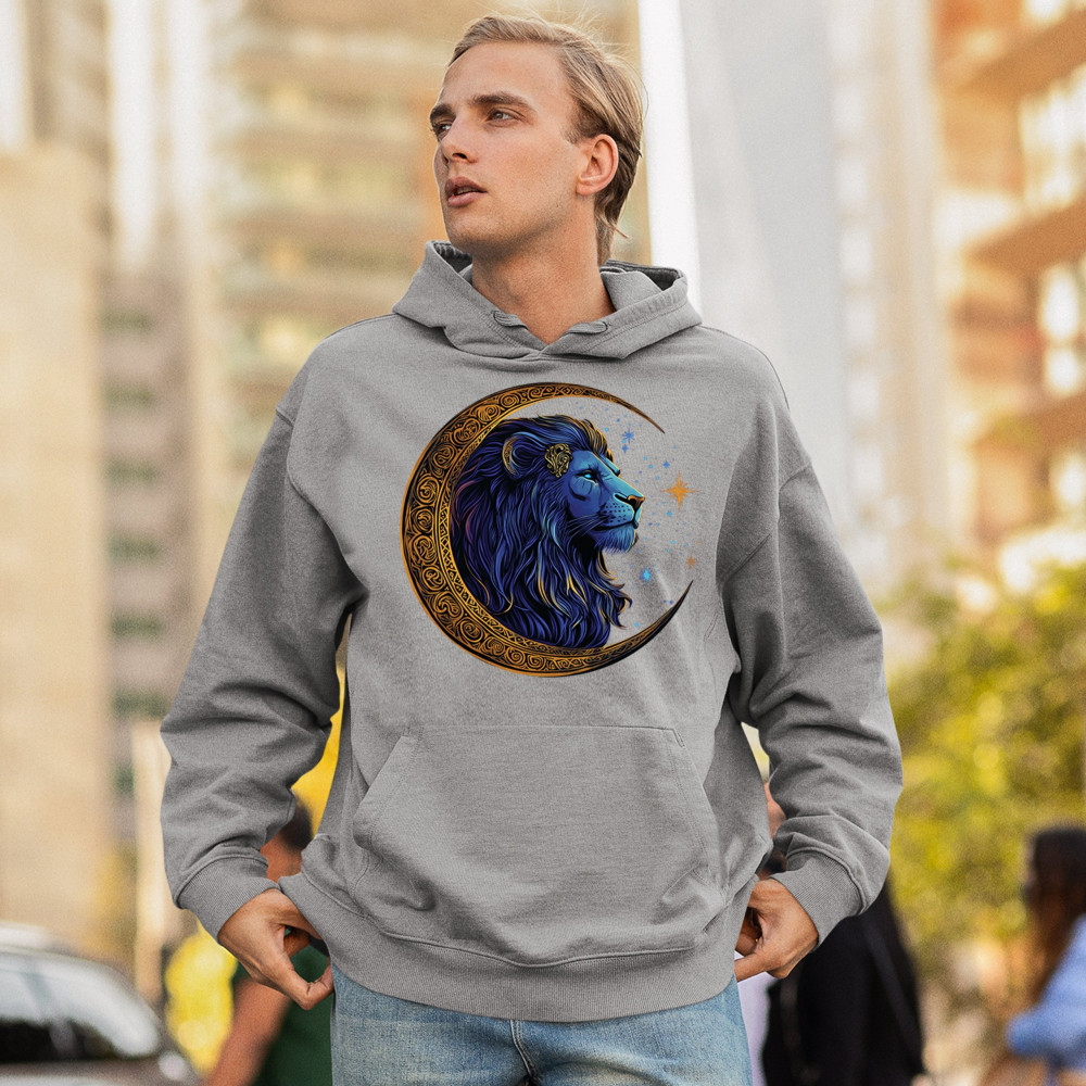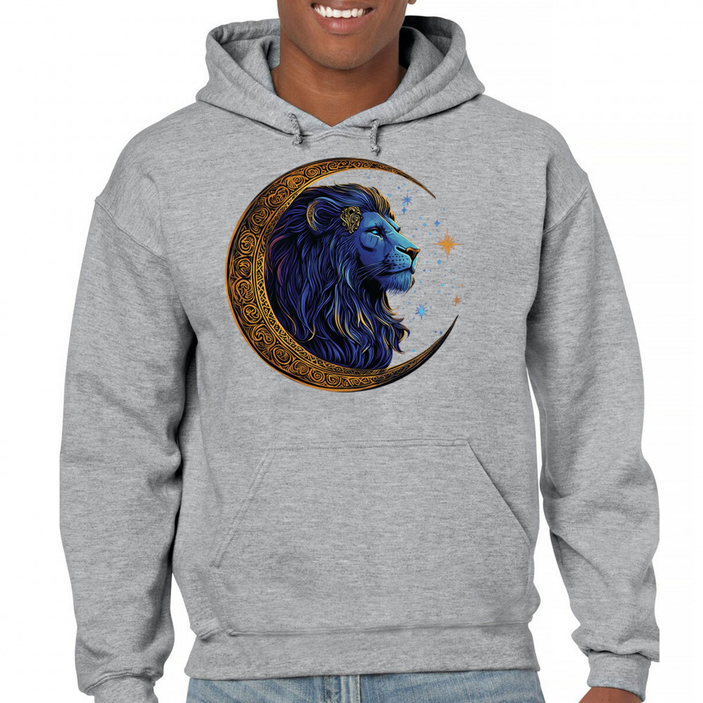 This celestial lion design features a majestic mane framed by a golden Celtic crescent moon, symbolizing leadership, courage, and wild spirit. Perfect for Leo zodiac signs, mystic seekers, and fantasy fans, this artwork blends tribal symbolism, cosmic energy, and regal power in one visually stunning tribute to inner strength.