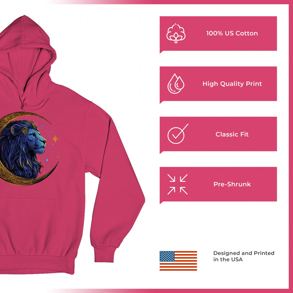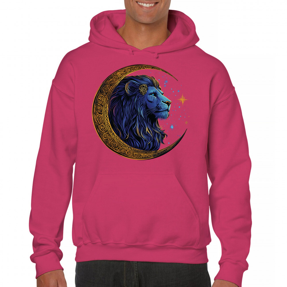 Majestic lion in Celtic crescent moon design—ideal for Leos, fantasy fans, and spiritual seekers drawn to strength and celestial symbolism.