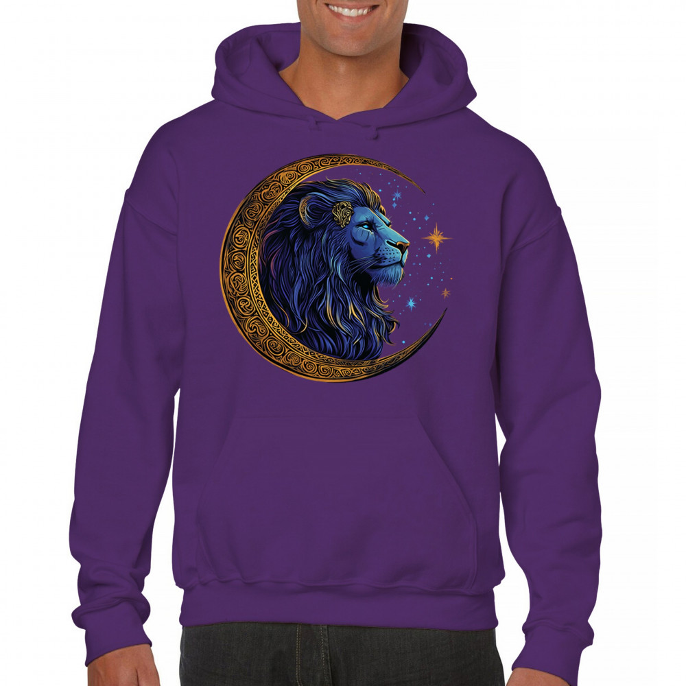 Majestic lion in Celtic crescent moon design—ideal for Leos, fantasy fans, and spiritual seekers drawn to strength and celestial symbolism.