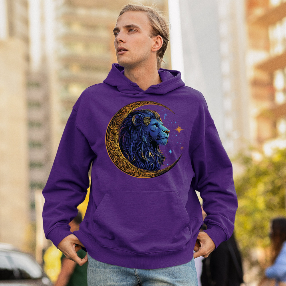 This celestial lion design features a majestic mane framed by a golden Celtic crescent moon, symbolizing leadership, courage, and wild spirit. Perfect for Leo zodiac signs, mystic seekers, and fantasy fans, this artwork blends tribal symbolism, cosmic energy, and regal power in one visually stunning tribute to inner strength.