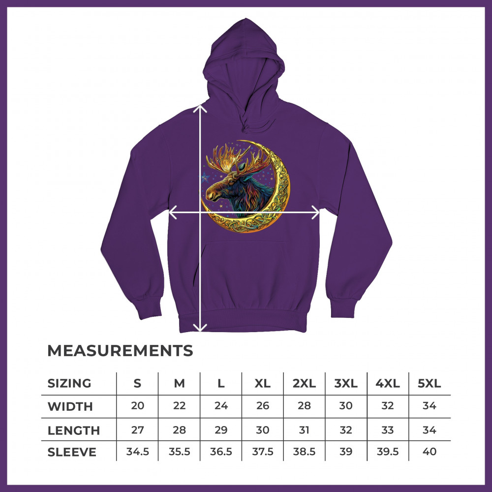 This vibrant moose design blends tribal art and fantasy energy with a golden Celtic crescent moon. Cosmic fur, radiant antlers, and a star-speckled sky make this image a symbol of strength, natural wisdom, and mysticism. Ideal for druids, hunters, fantasy fans, or spirit animal seekers connected to the forest and celestial realm.