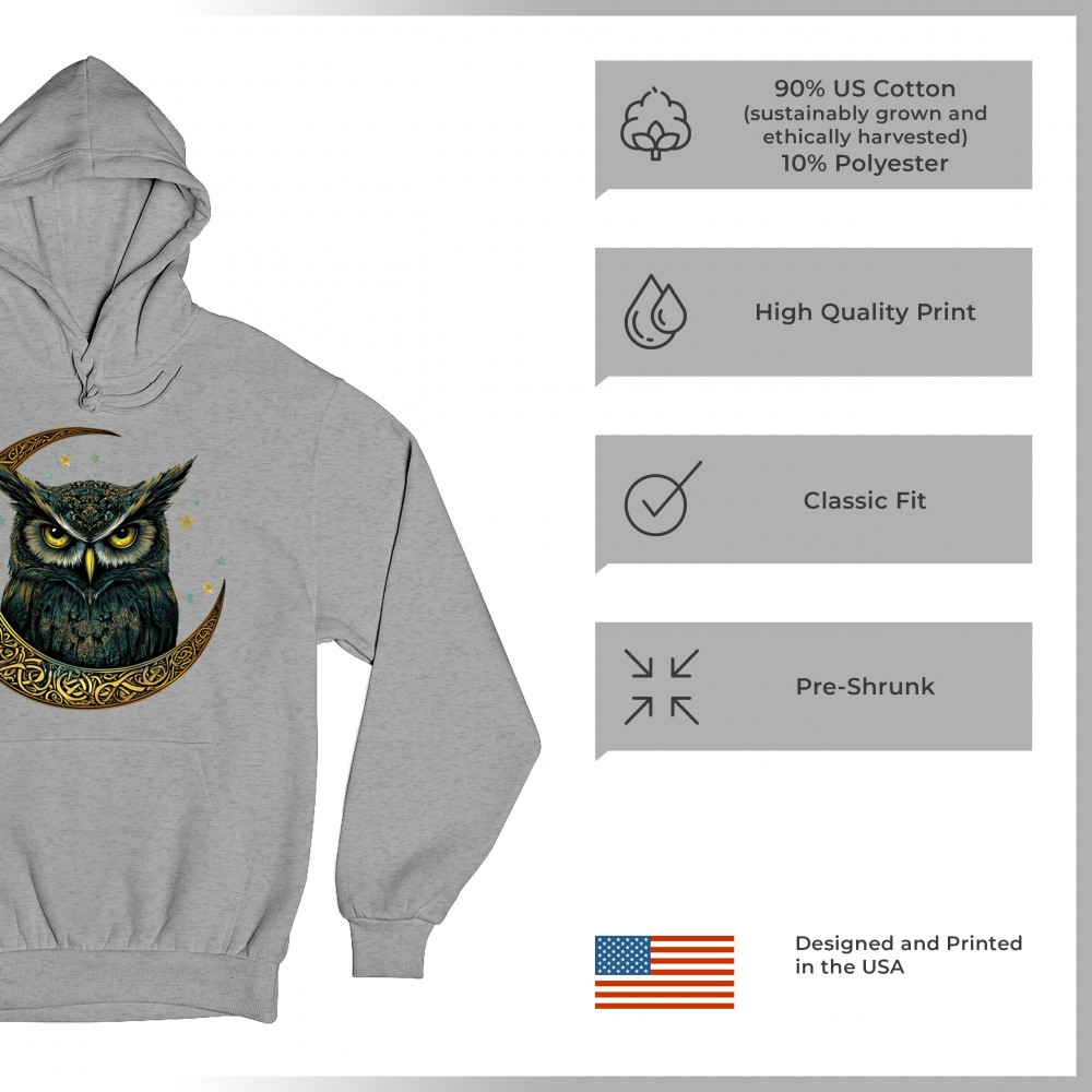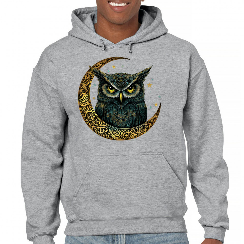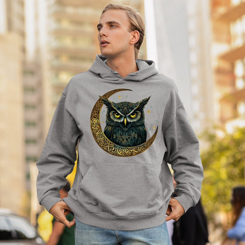 Cosmic owl in Celtic crescent moon—symbol of wisdom, night mystery, and spirit. Perfect for mystics, owl lovers, and fantasy fans.
