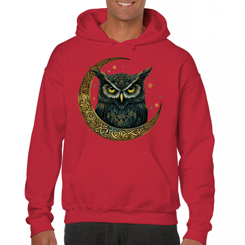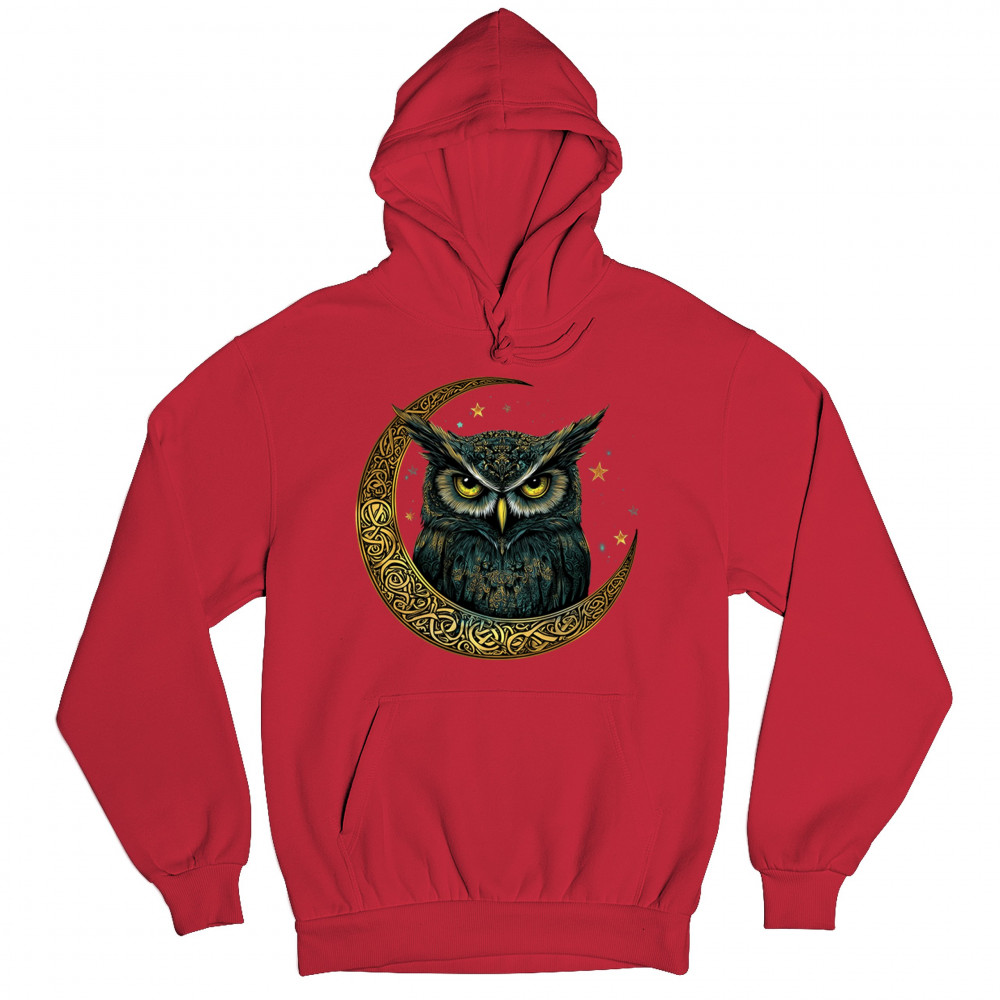 CELTIC MOON OWL sweatshirt mystic night bird spiritual wisdom symbol hoodie red