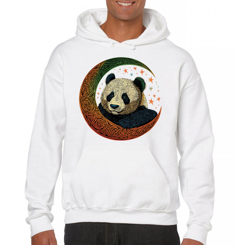 Peaceful panda in Celtic crescent moon design—symbol of harmony, balance, and spiritual calm for nature lovers, mystics, and gentle souls.